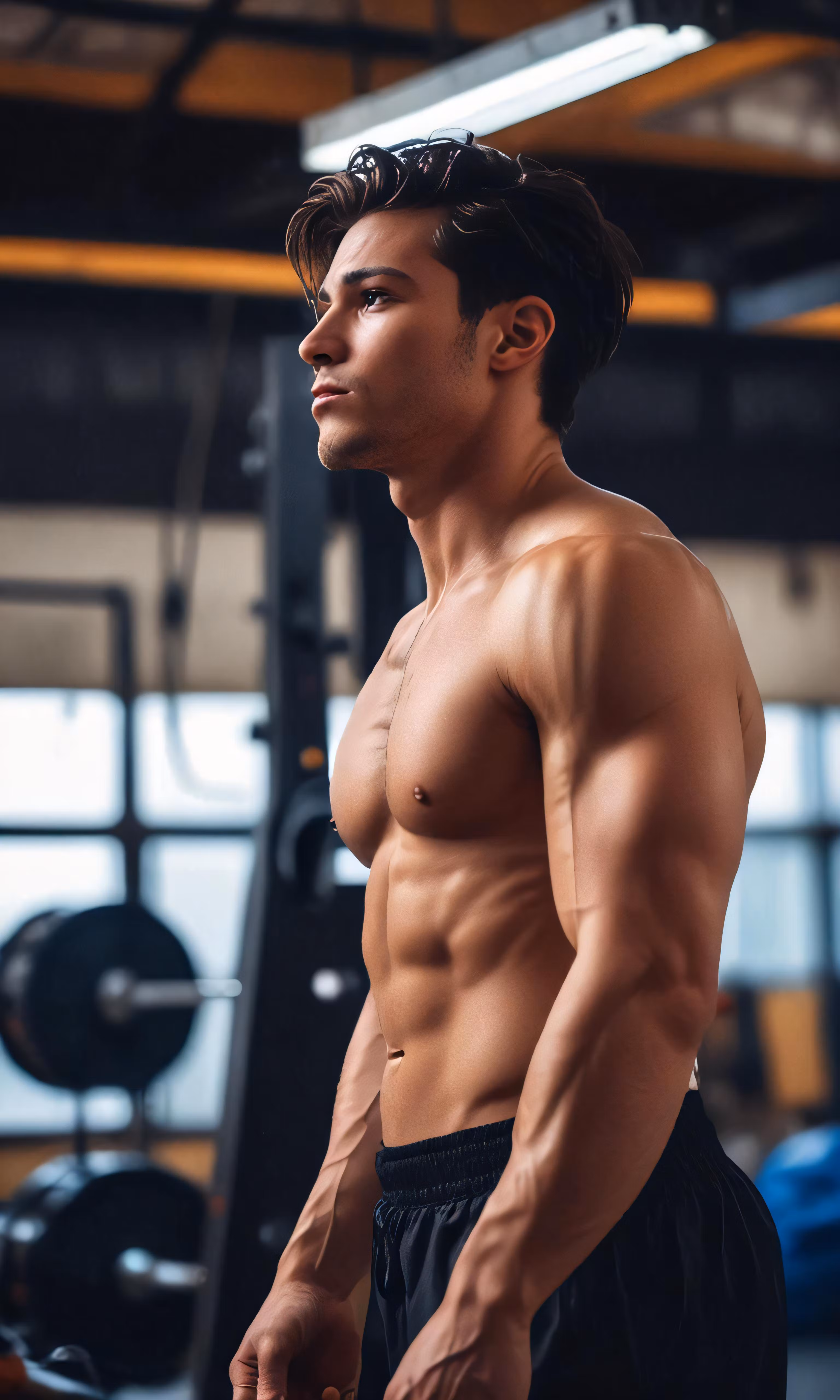 High resolution picture, free to use, a man with a no shirt in a gym