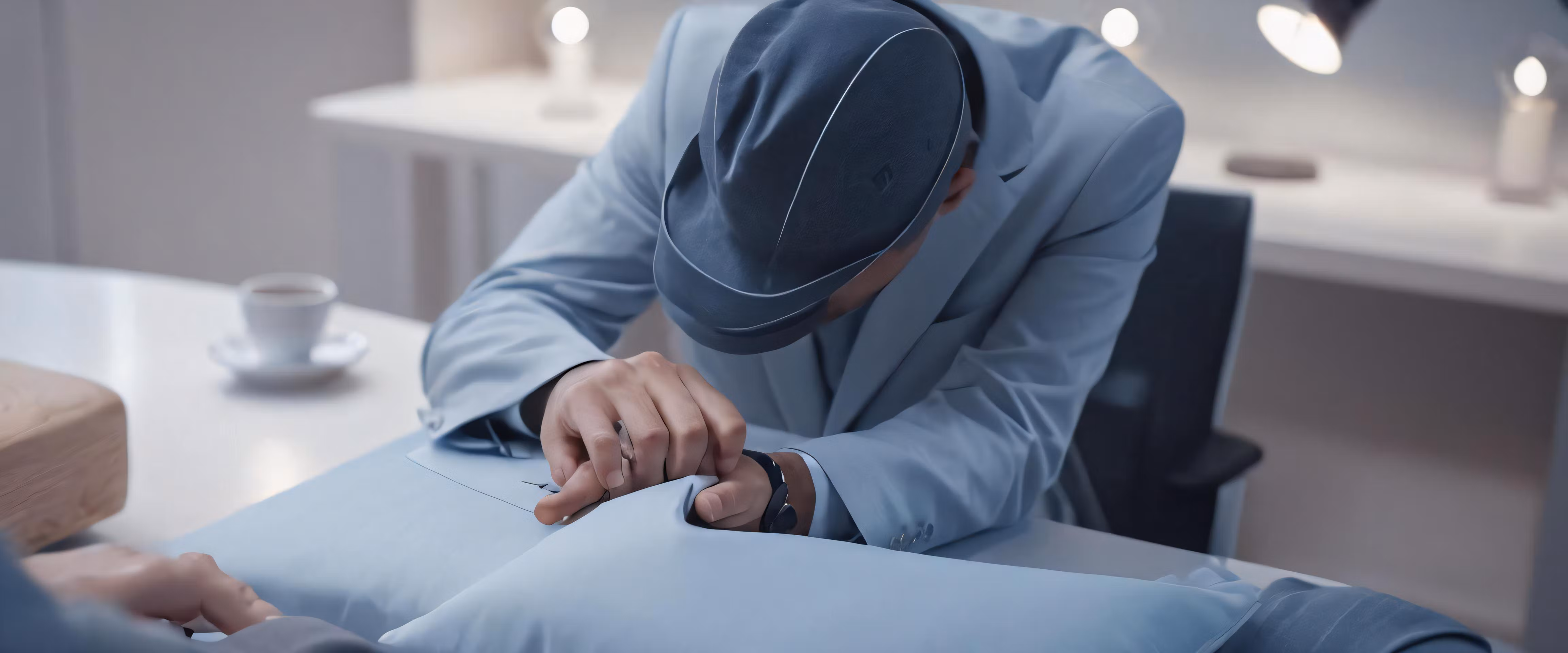 High resolution picture, free to use, a man with a suit and hat sitting on a bed next to another man