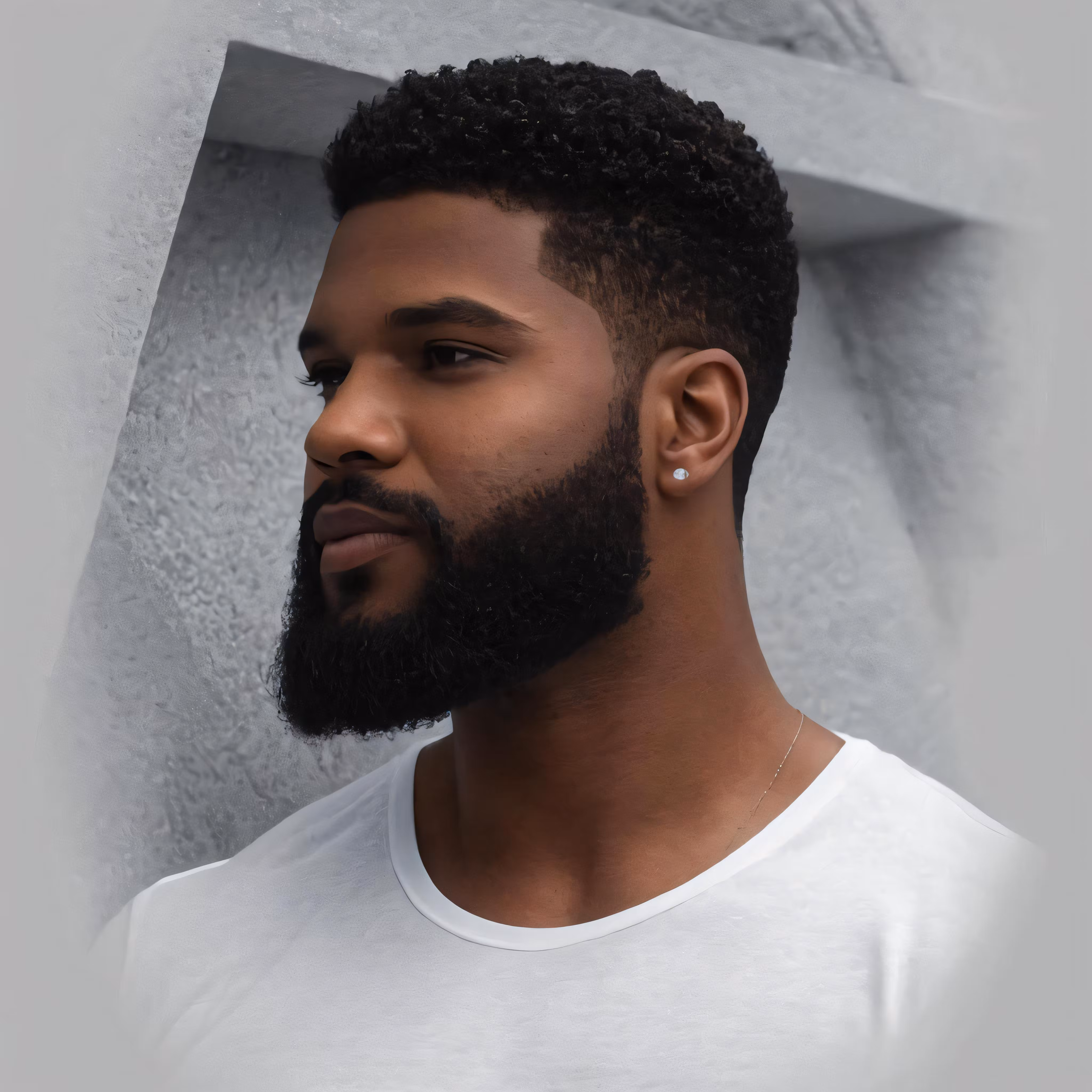 High resolution picture, free to use, a man with an afro haircut and piercing in his ear