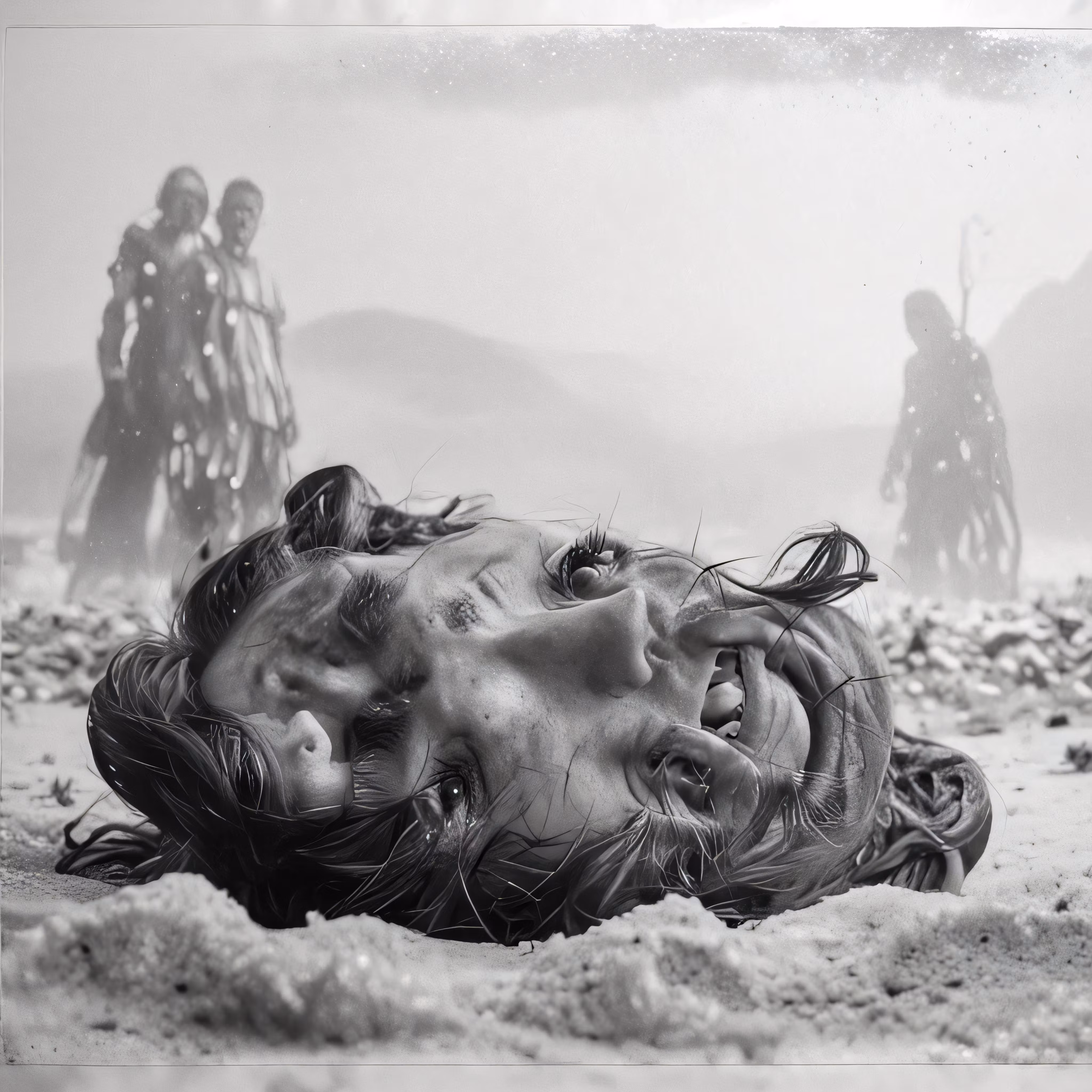 High resolution picture, free to use, a man with an evil expression in the sand