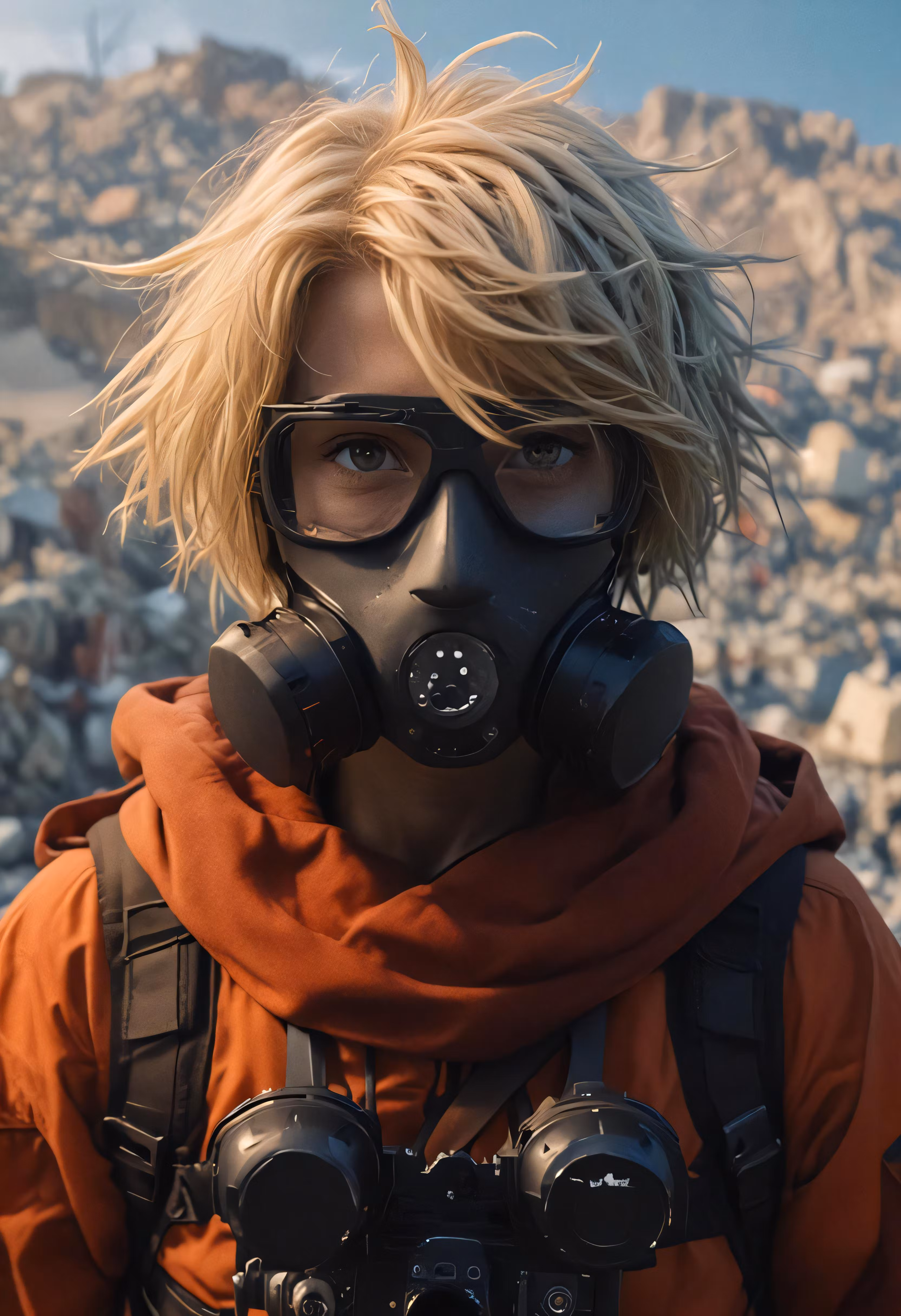 High resolution picture, free to use, a man with goggles, gas mask, and goggles