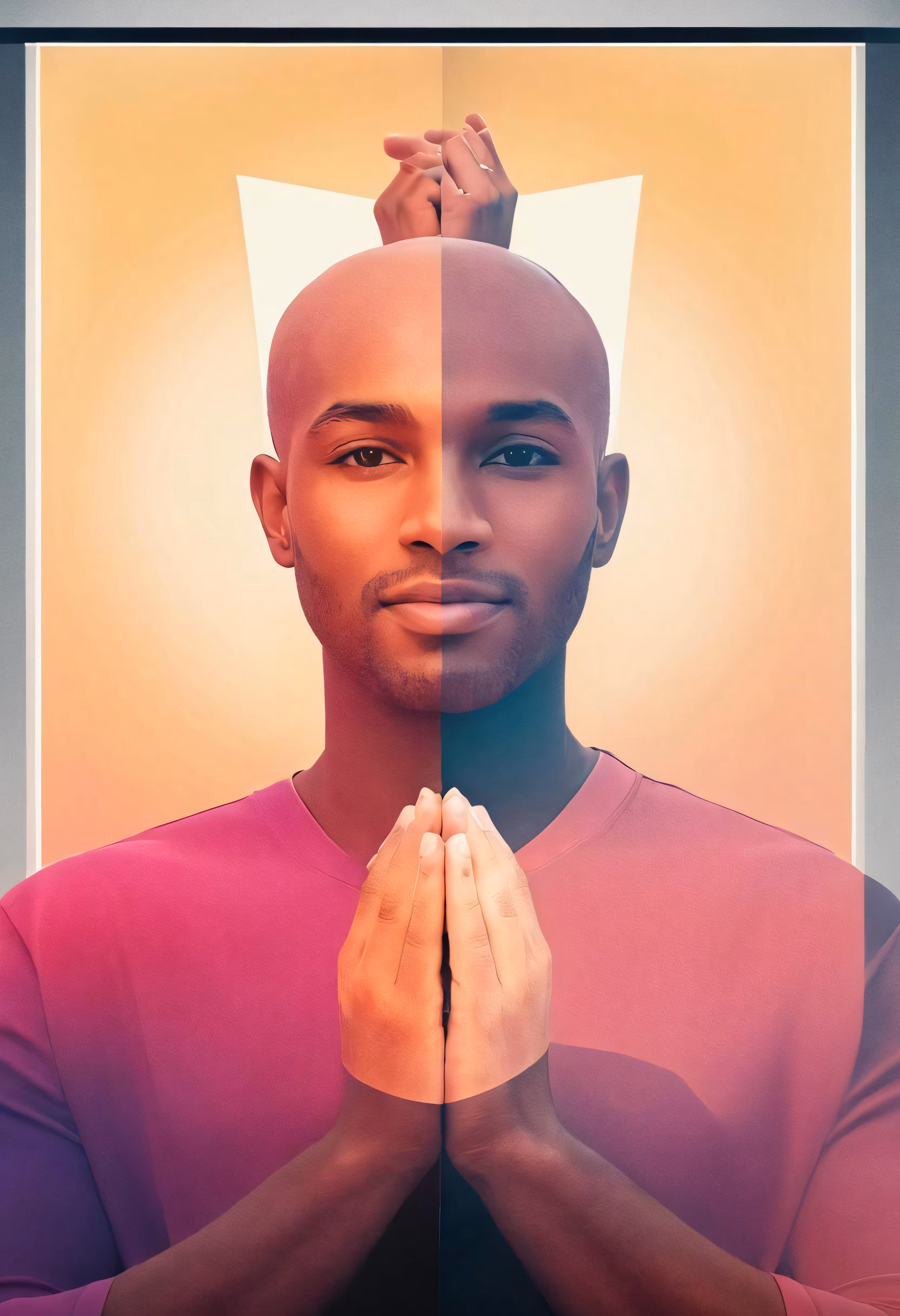 High resolution picture, free to use, a man with hands folded on his head next to another person