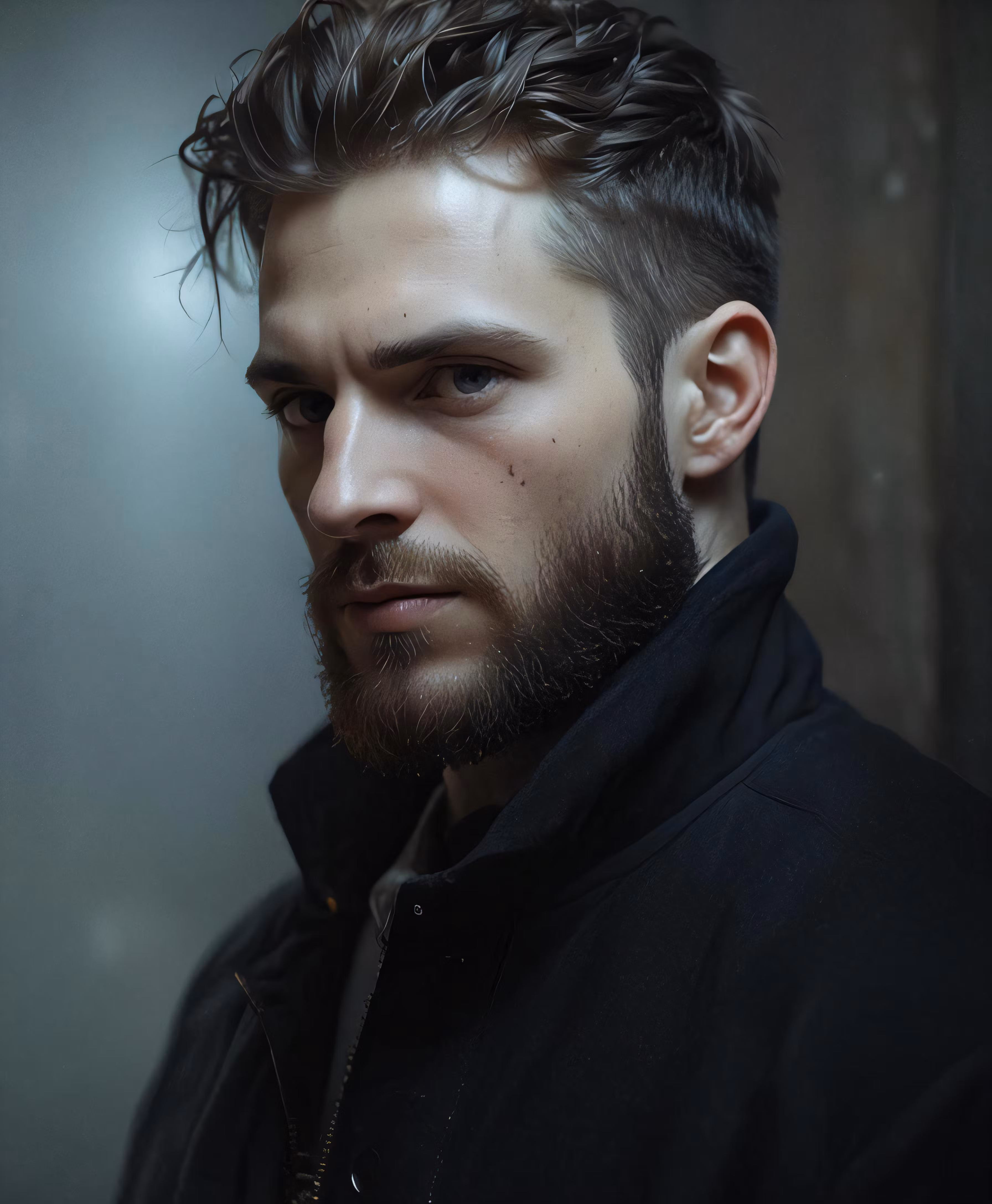 High resolution picture, free to use, a man with long, wavy hair wearing a black jacket
