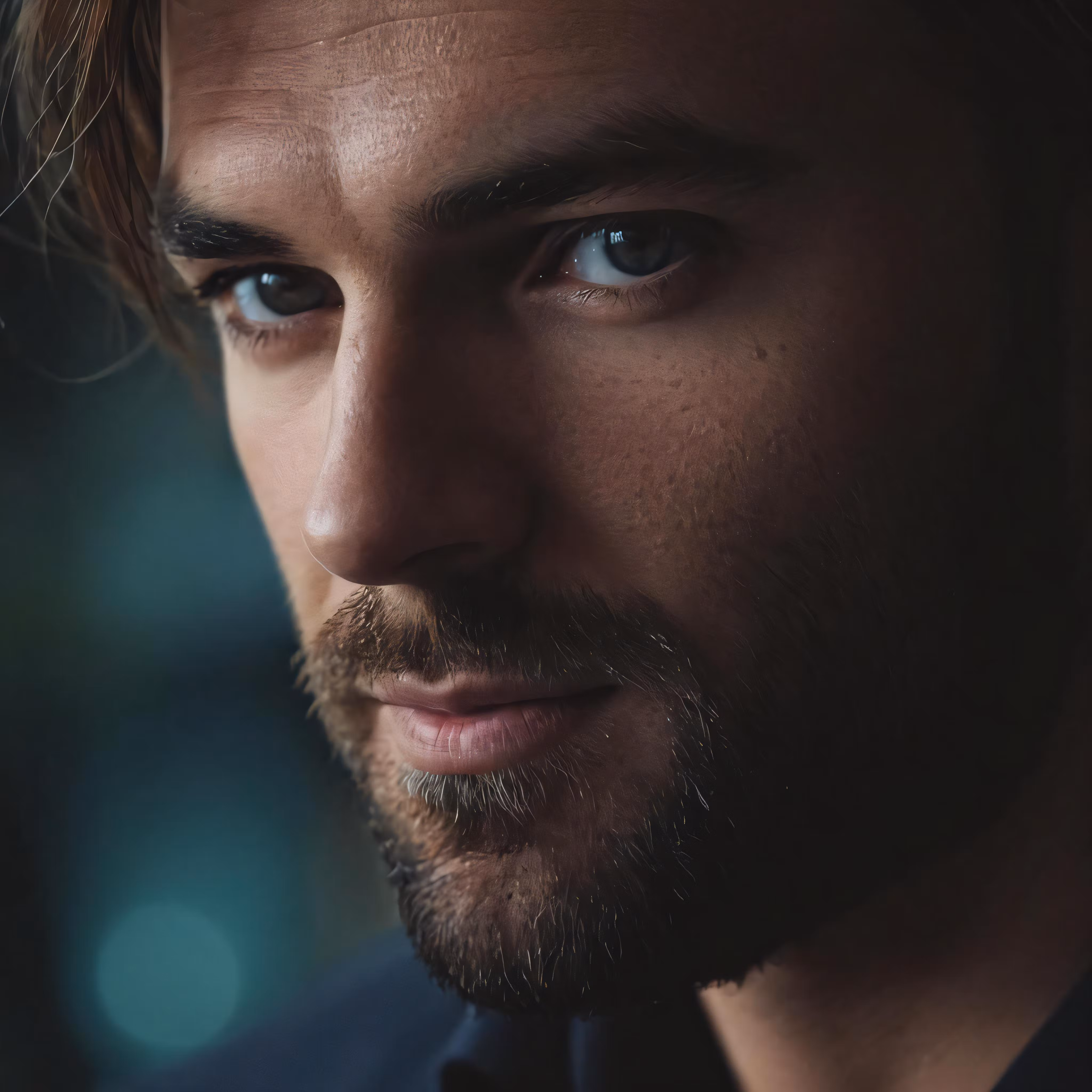 High resolution picture, free to use, a man with long hair and blue eyes posing for a photo