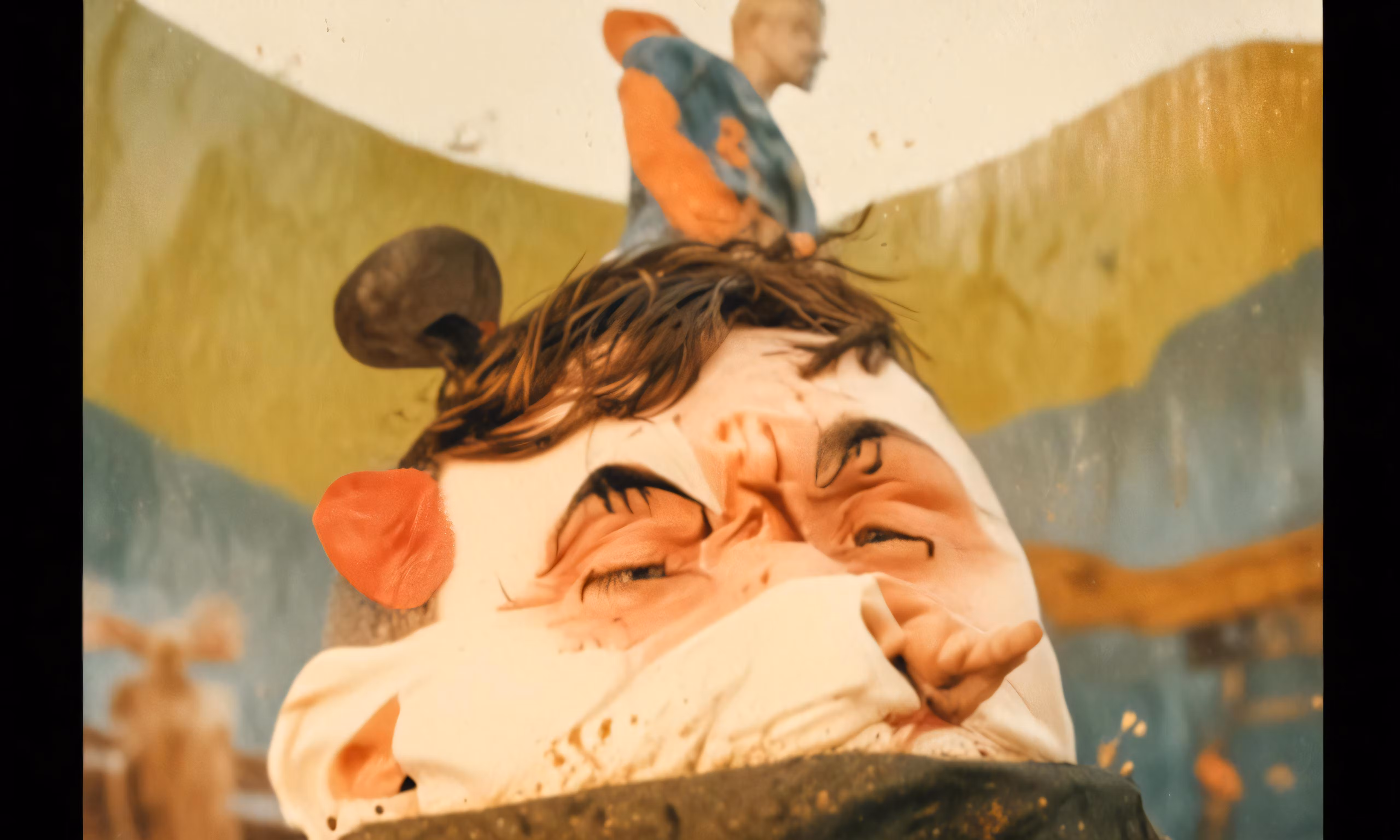 High resolution picture, free to use, a man with painted makeup in front of a mural