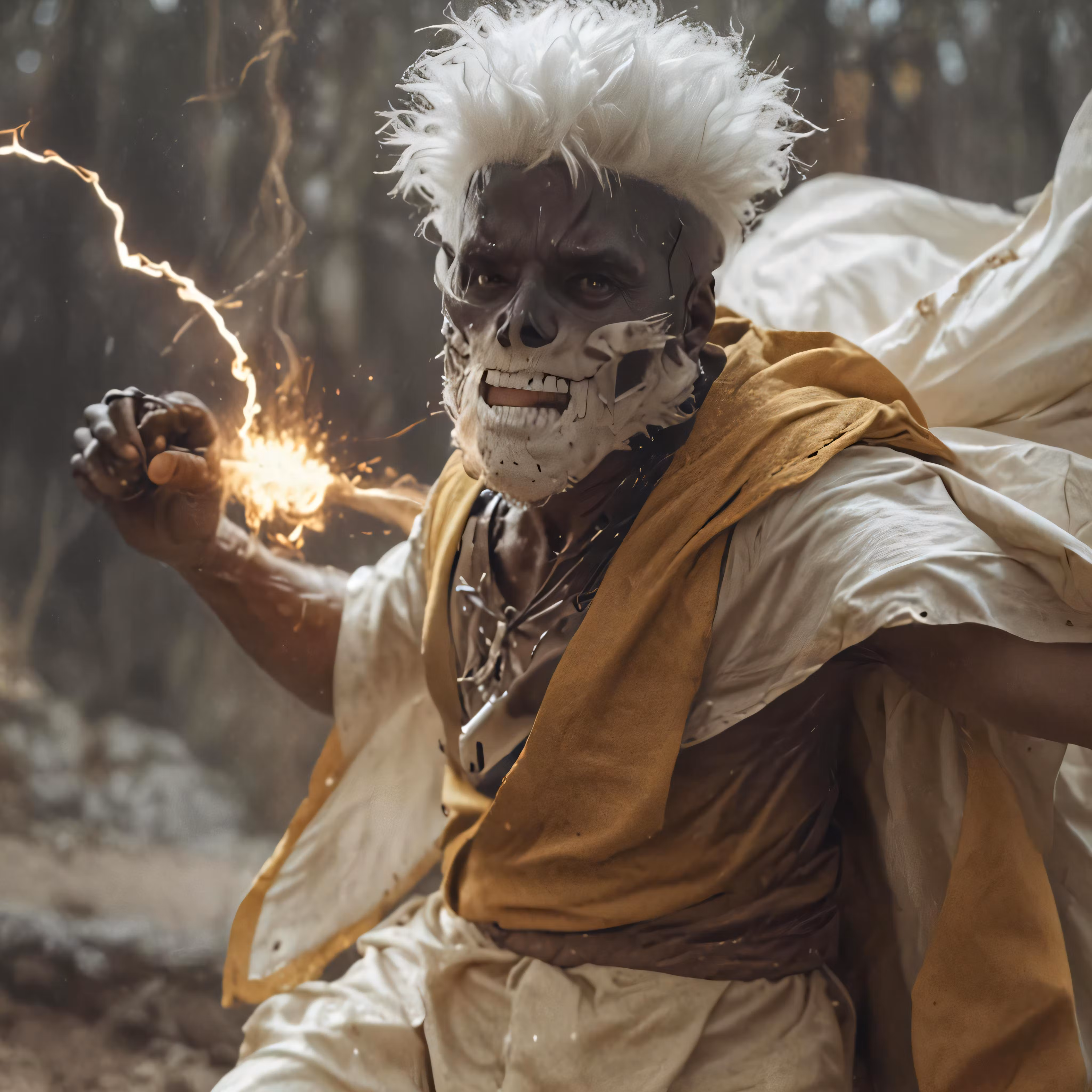 High resolution picture, free to use, a man with white face paint and his face paint looks like an indian holding a sparkler