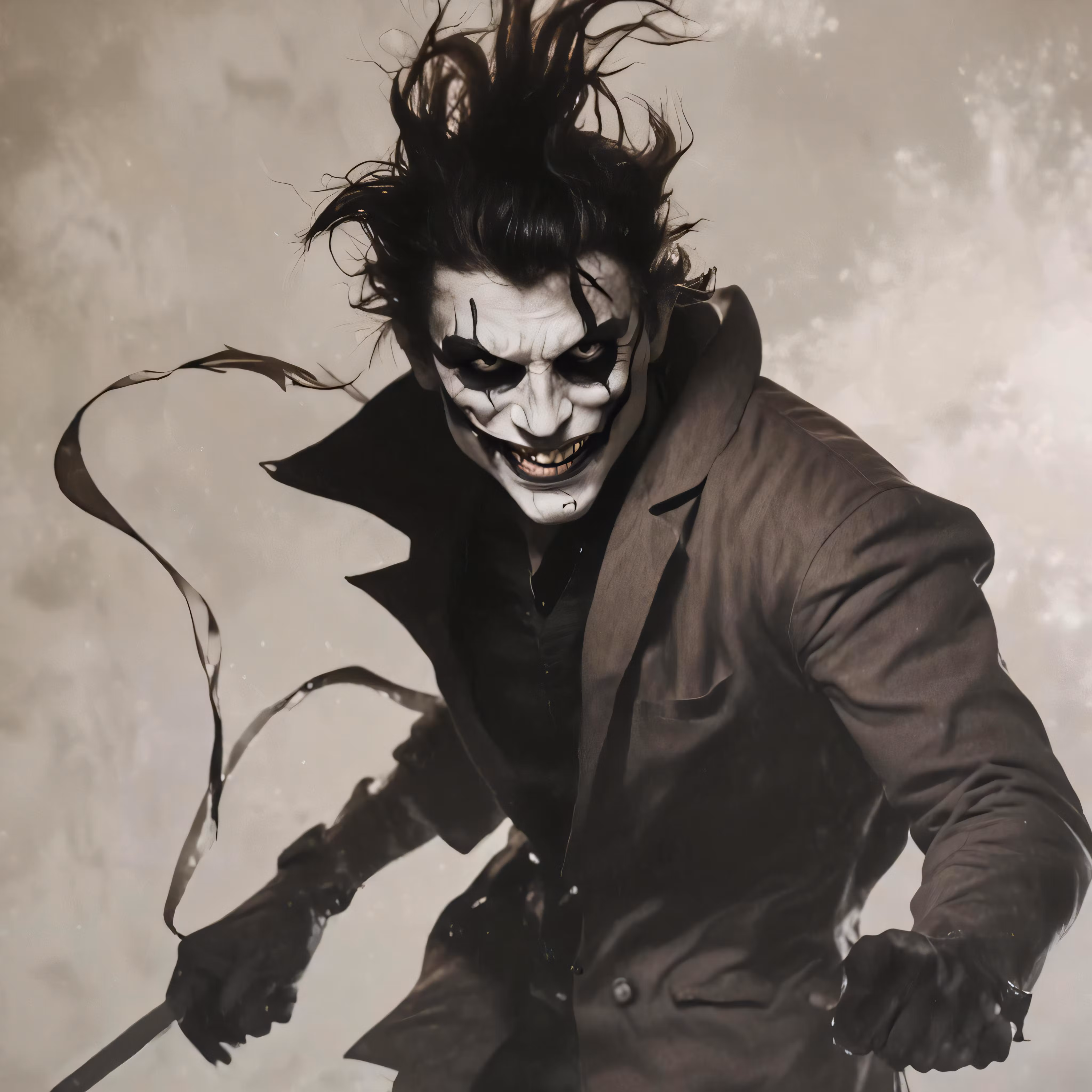 High resolution picture, free to use, a man with white makeup is holding a sword