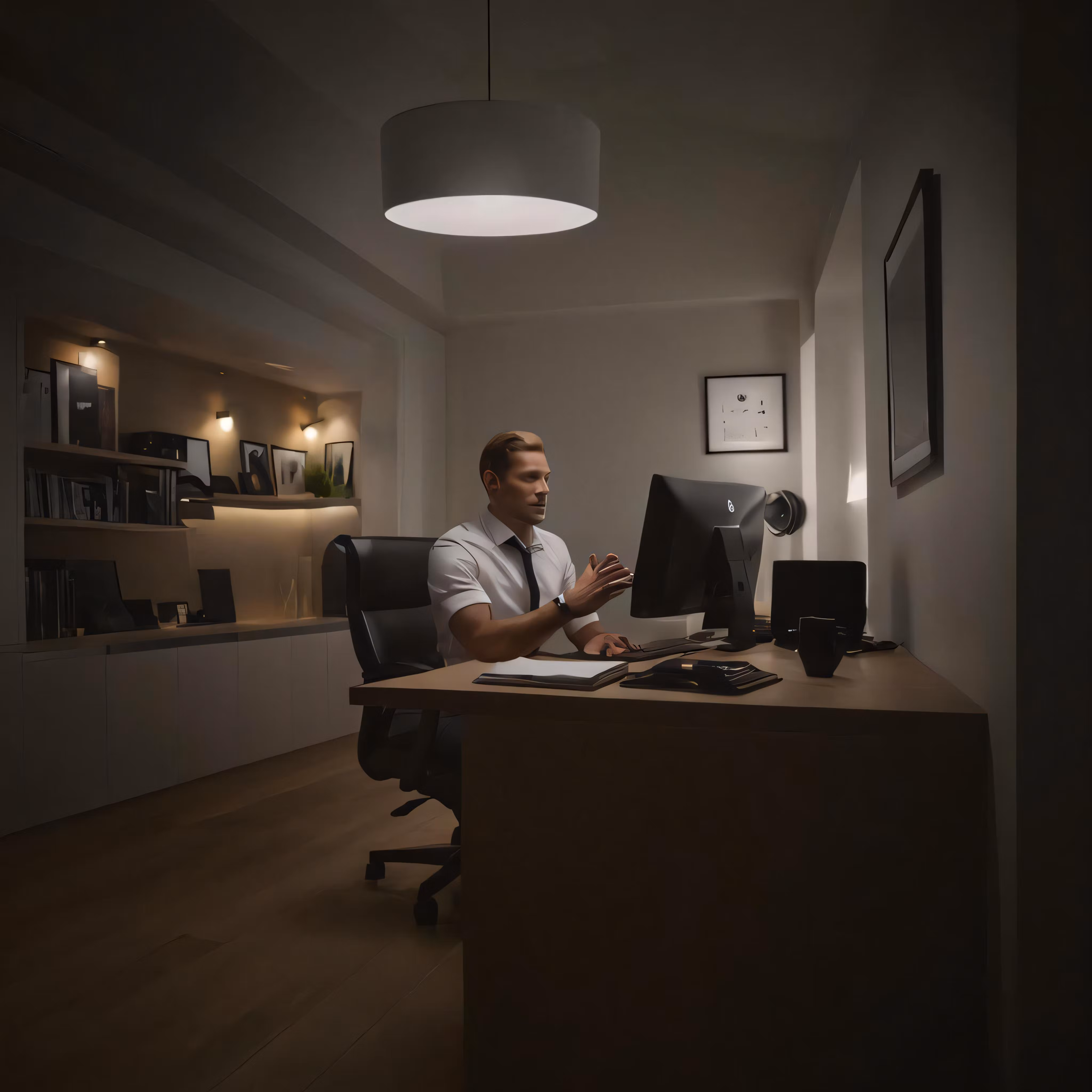 High resolution picture, free to use, a man working on a desktop computer at a desk