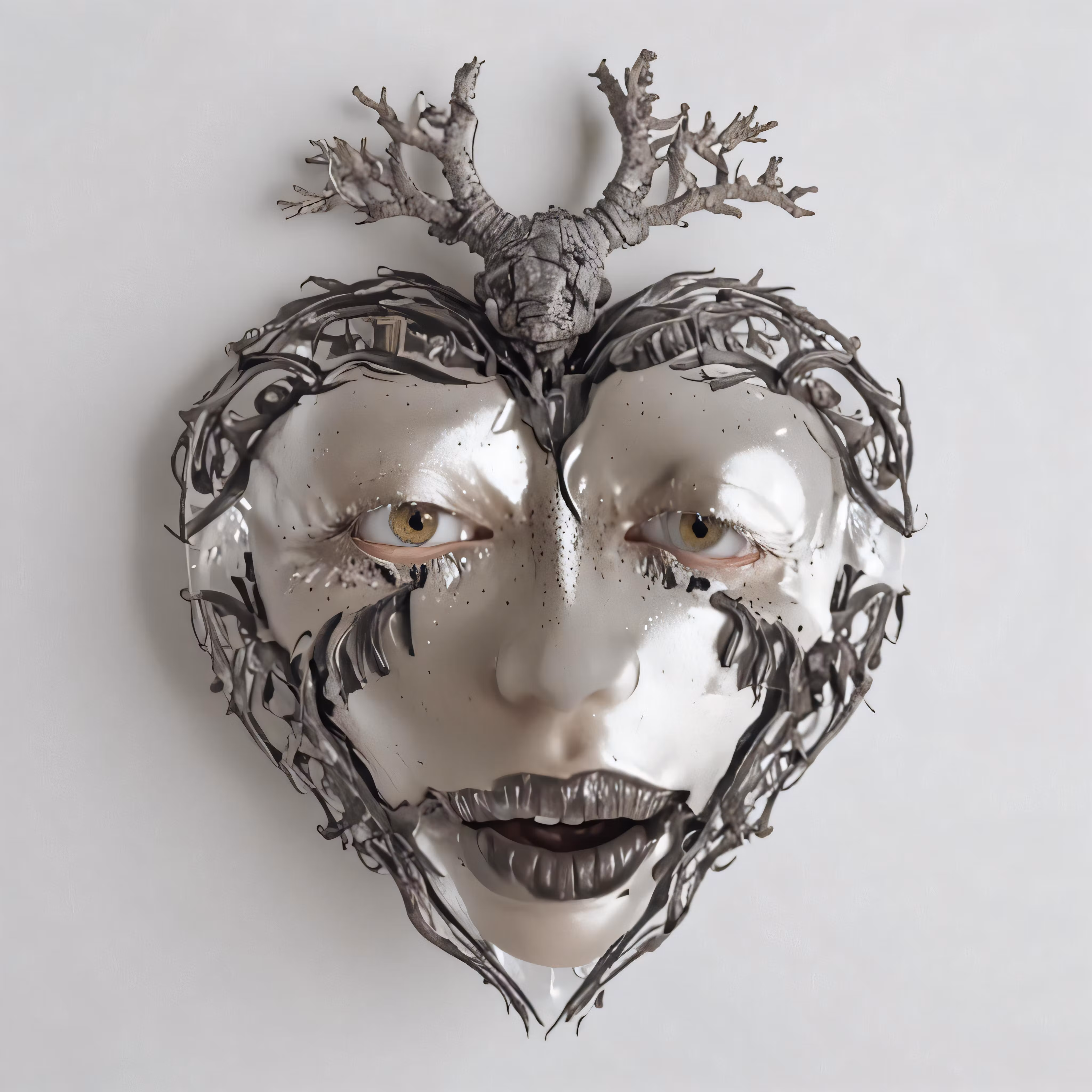 High resolution picture, free to use, a mask with various branches, leaves and berries all around it