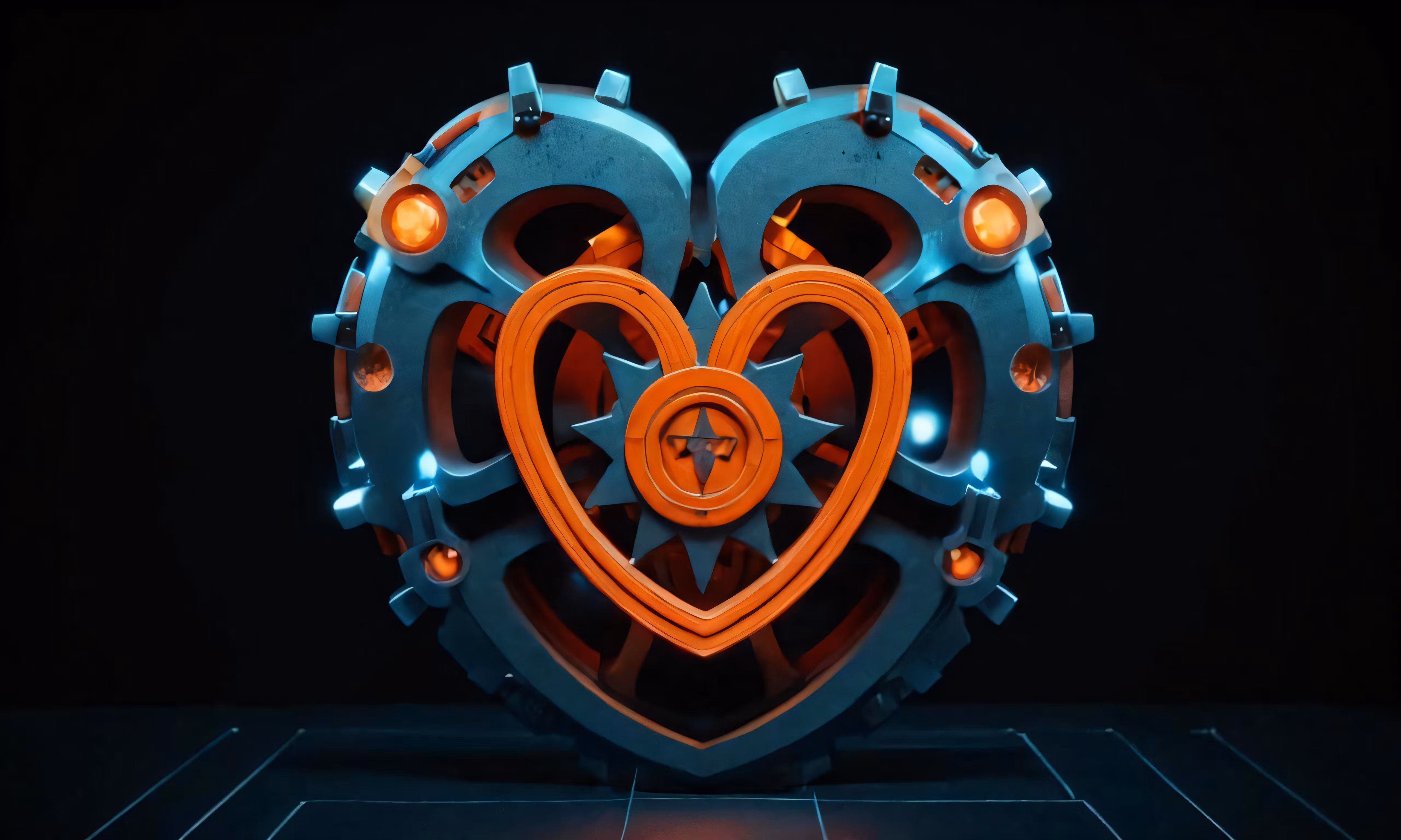High resolution picture, free to use, a mechanical heart, with bright lights and a decorative shape