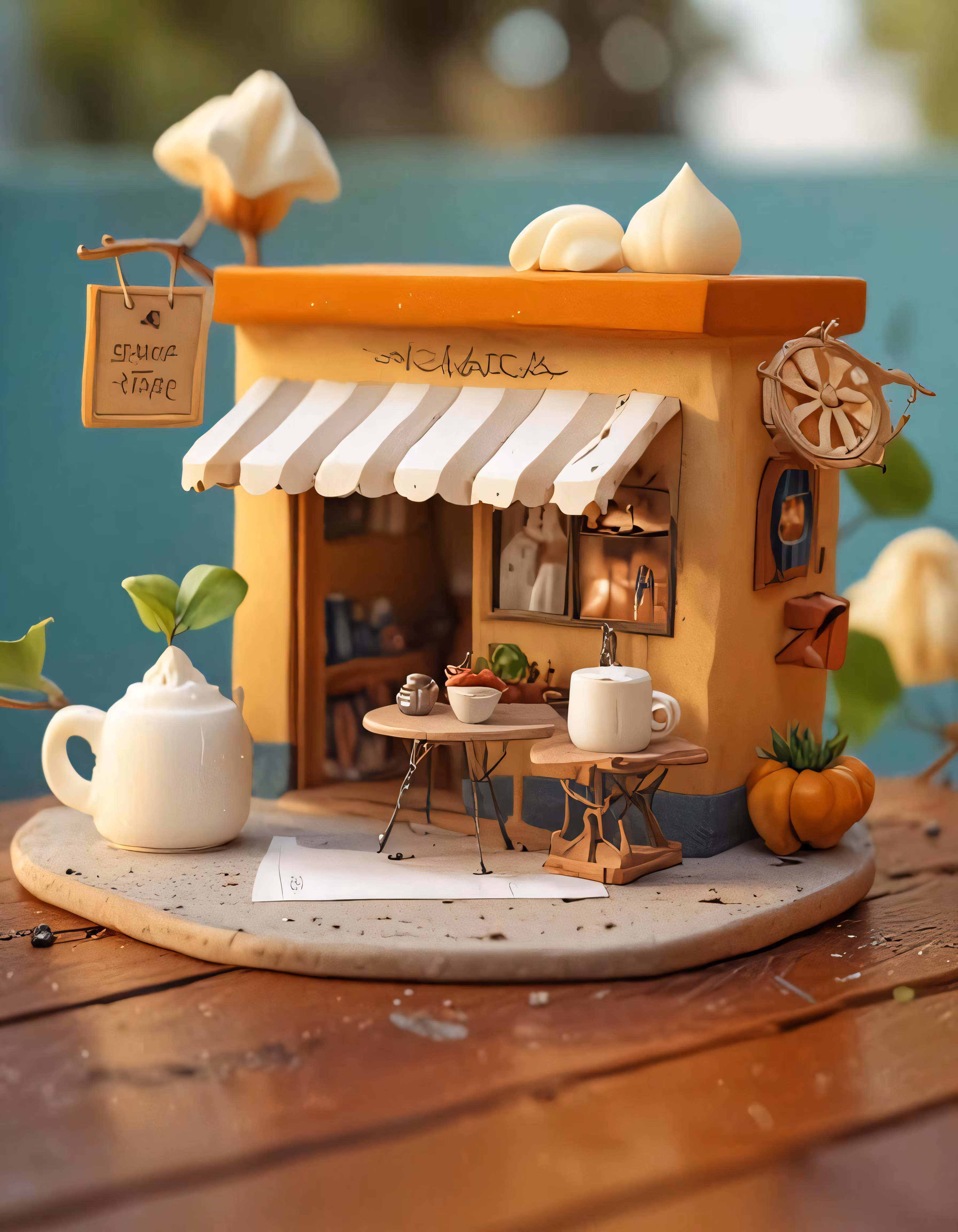 High resolution picture, free to use, a miniature doll house with a tea shop