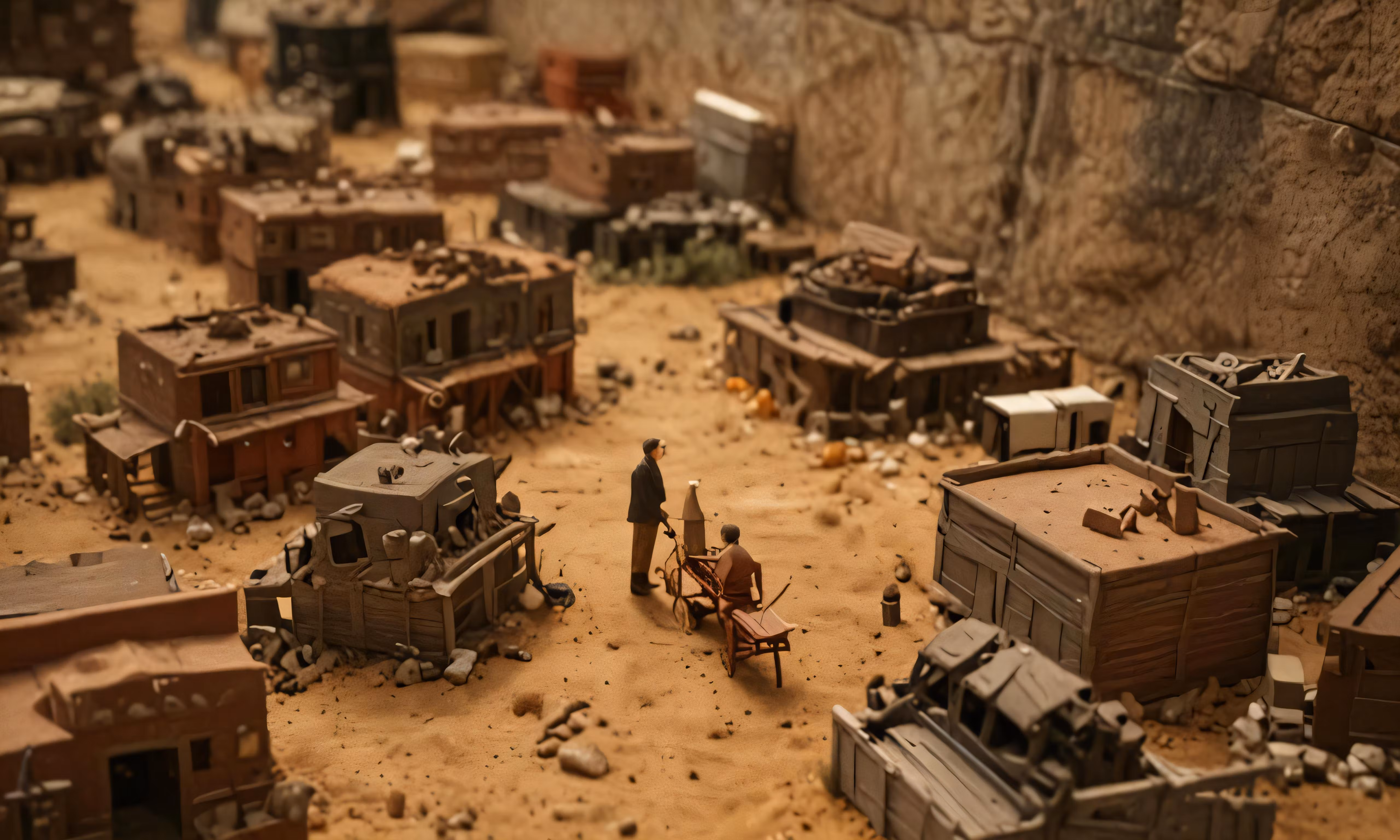 High resolution picture, free to use, a miniature model of buildings and construction in the desert