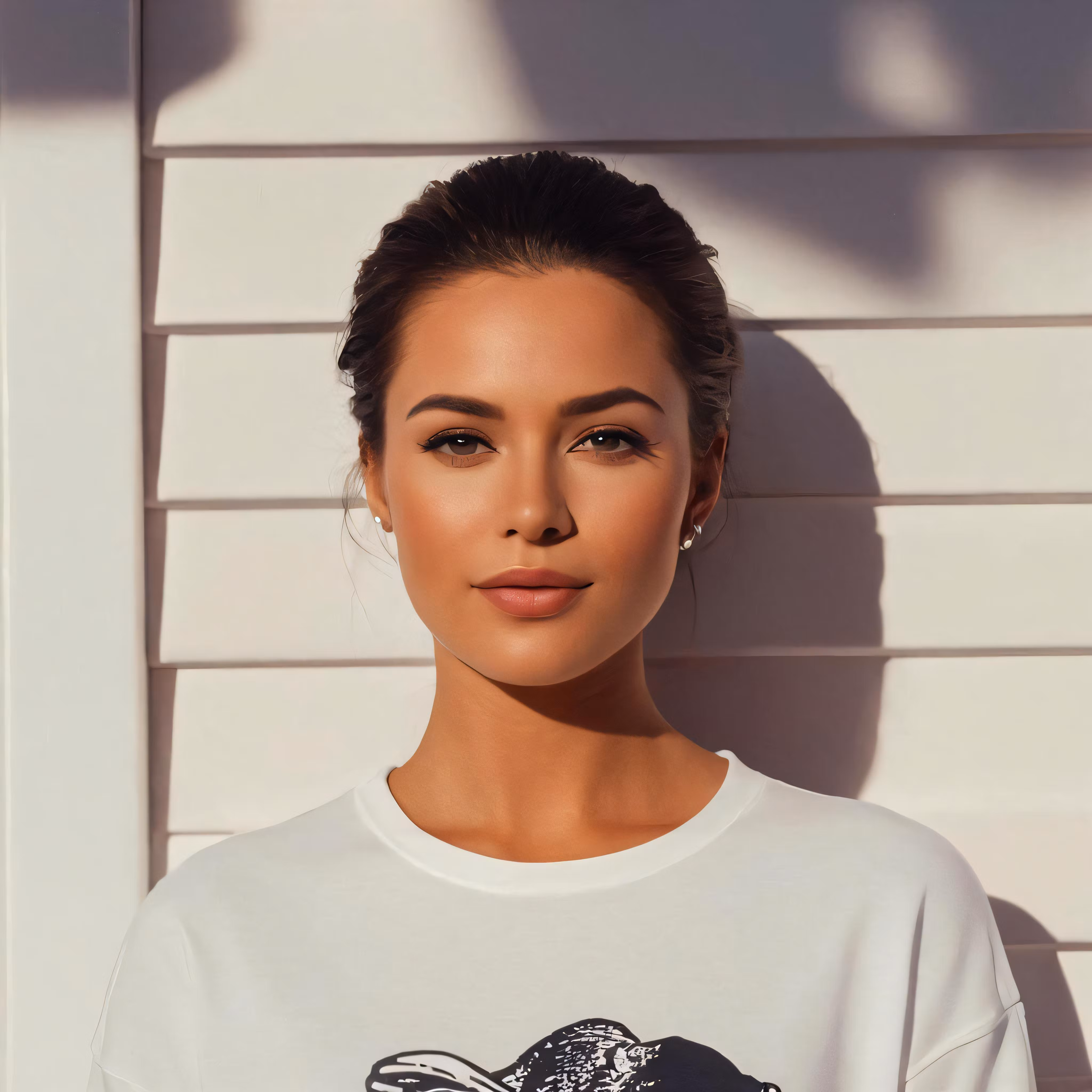 High resolution picture, free to use, a model in white shirt and brown hair posing for the camera