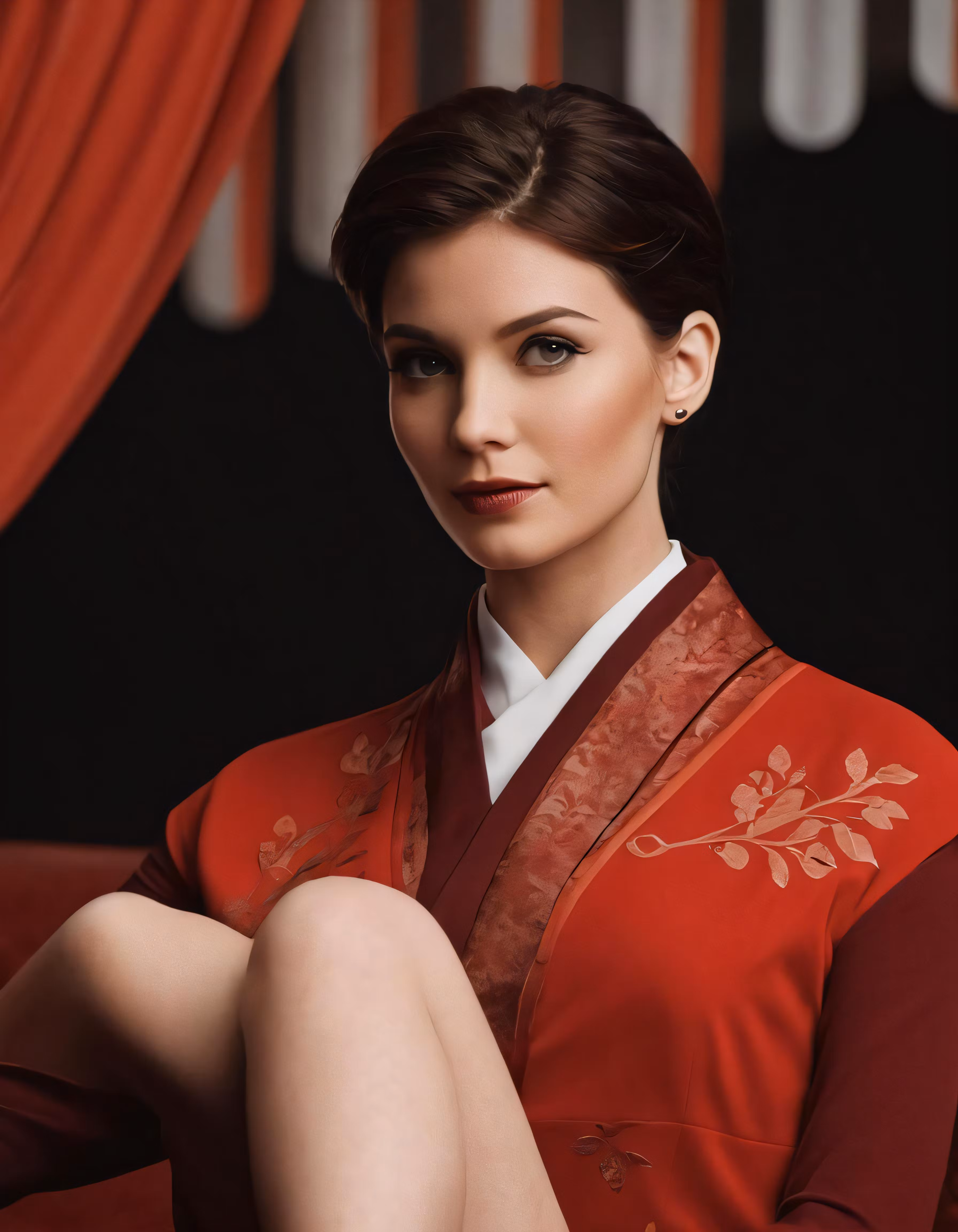 High resolution picture, free to use, a model sitting on a chair wearing a red top