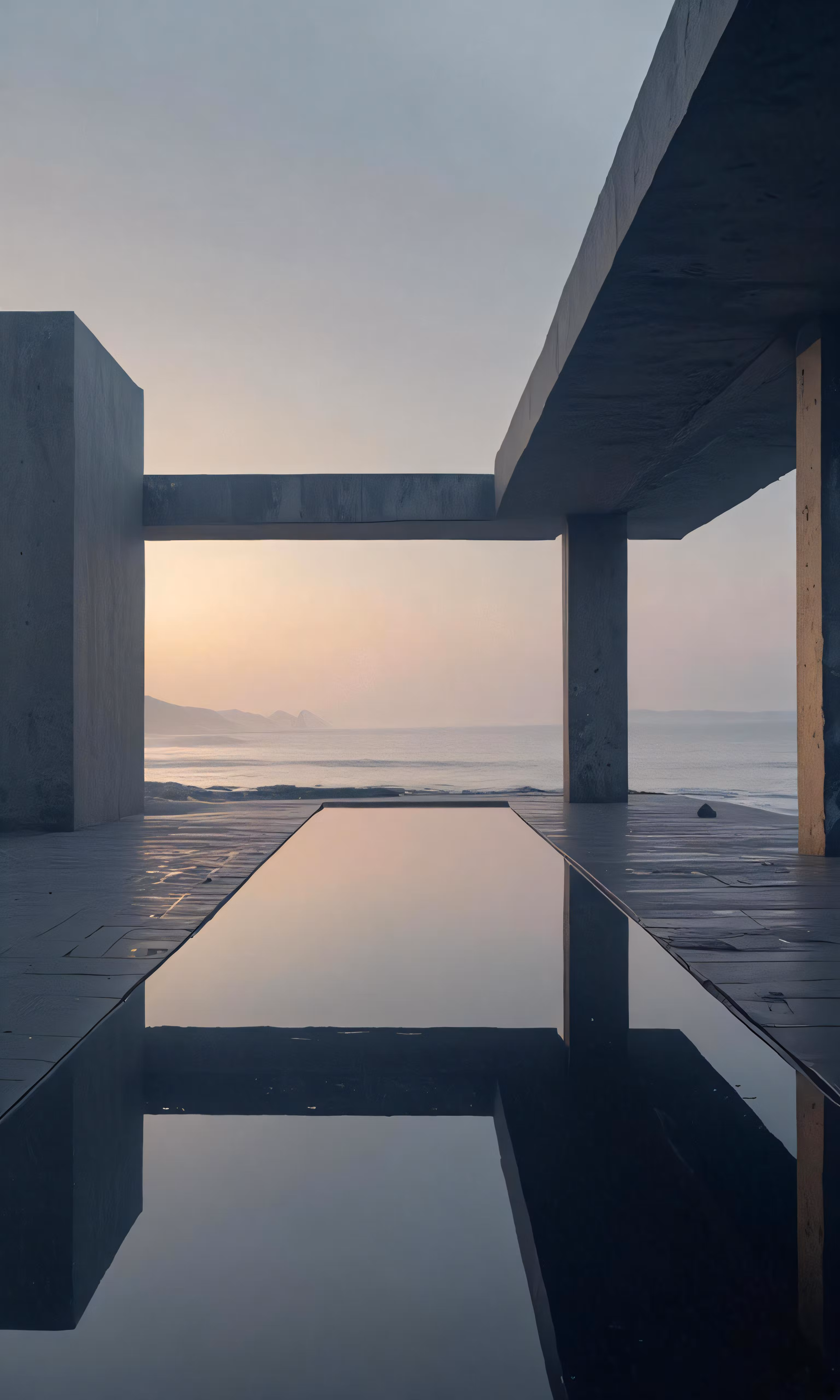 High resolution picture, free to use, a modern concrete pool with an ocean view