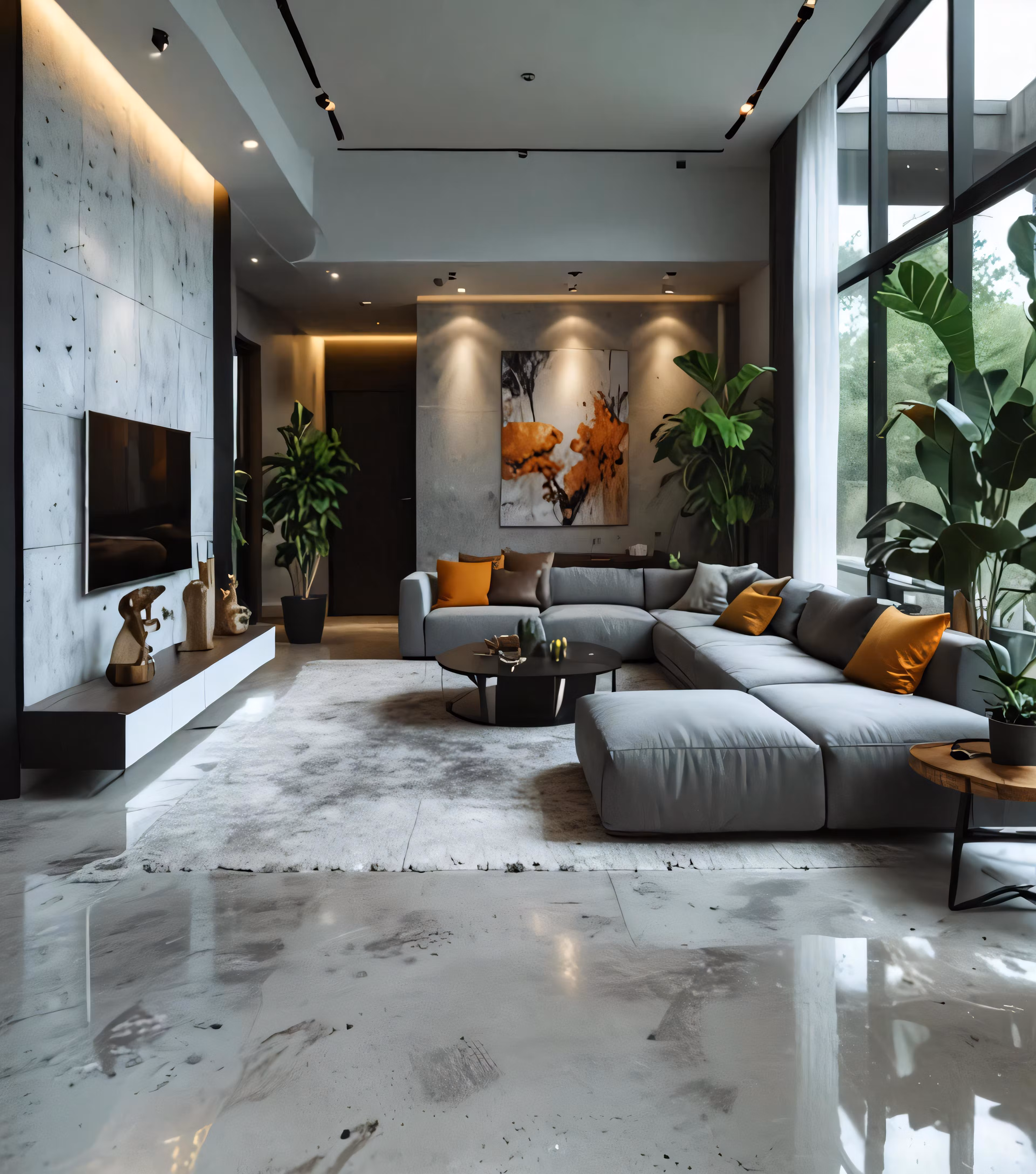 High resolution picture, free to use, a modern living room has an l shaped couch