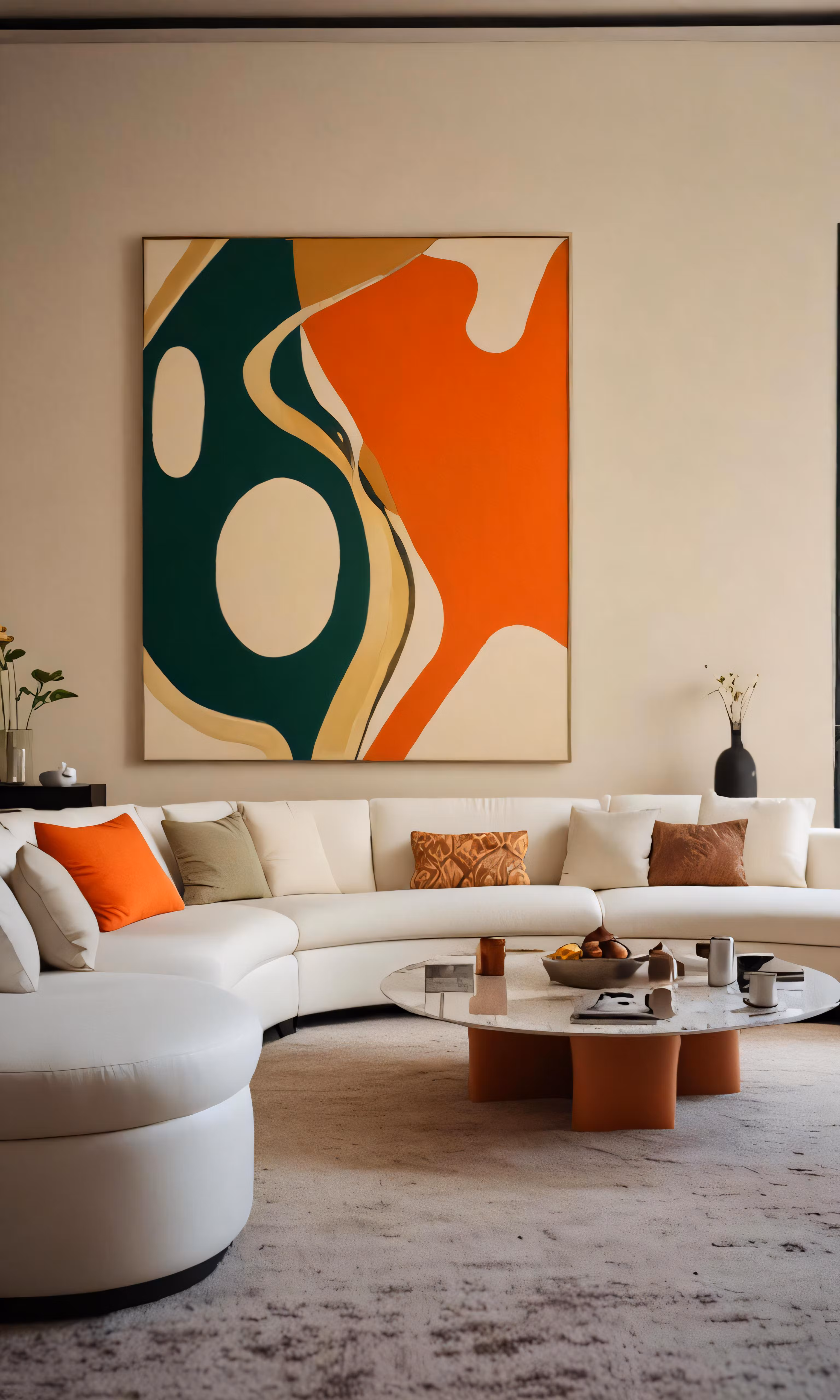 High resolution picture, free to use, a modern looking living room has an abstract painting