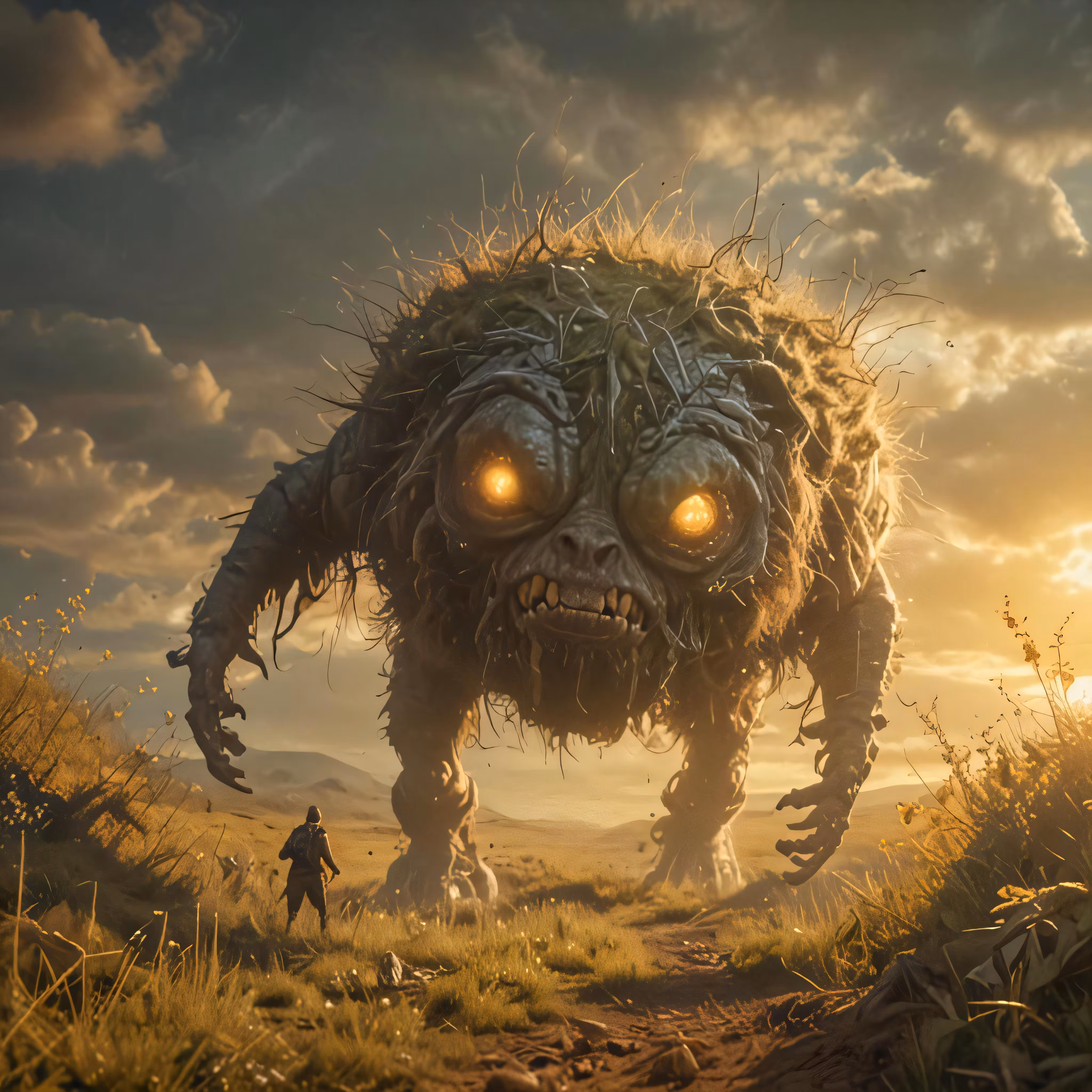 High resolution picture, free to use, a monster that is walking across a field