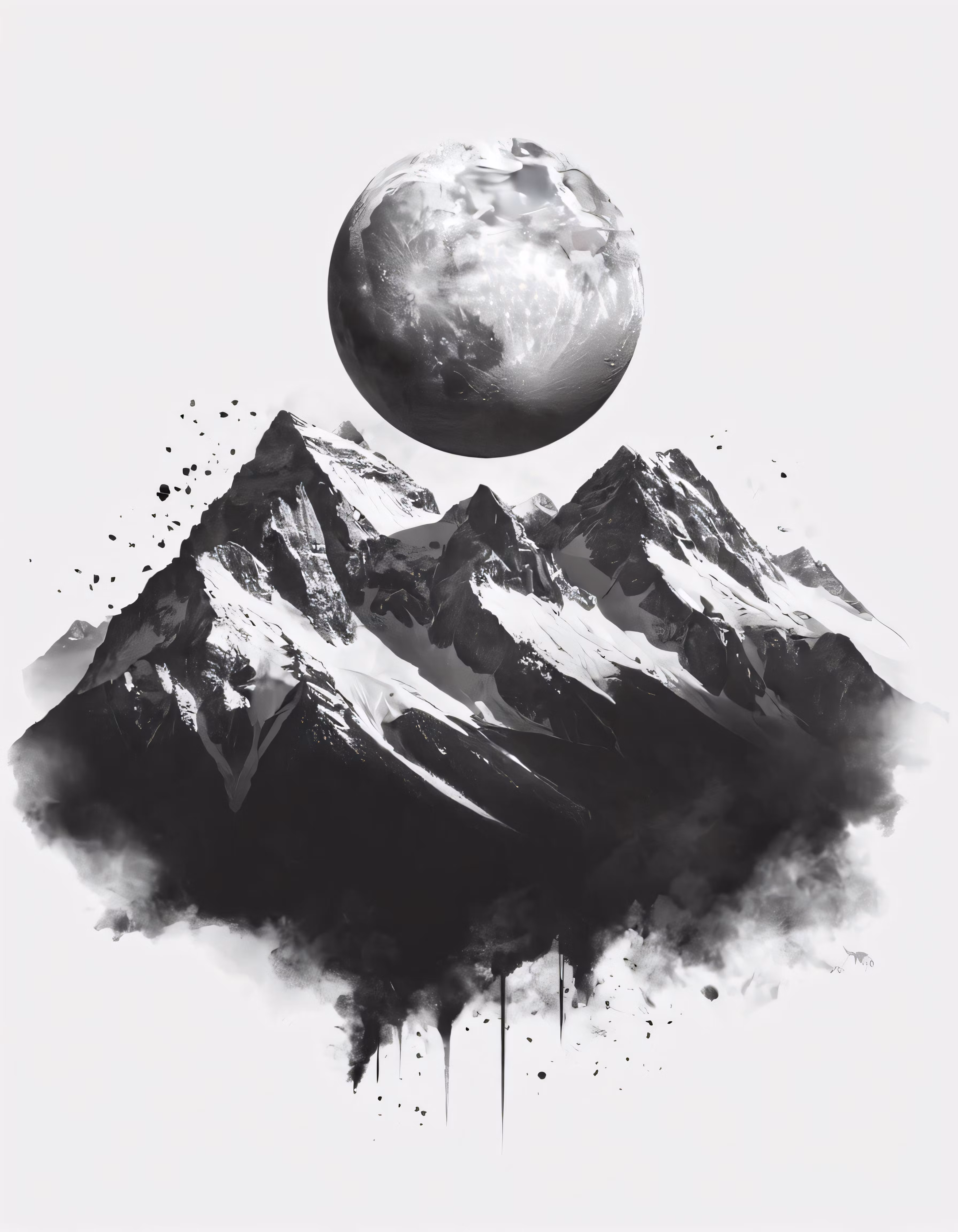 High resolution picture, free to use, a moon and some mountains on a white background