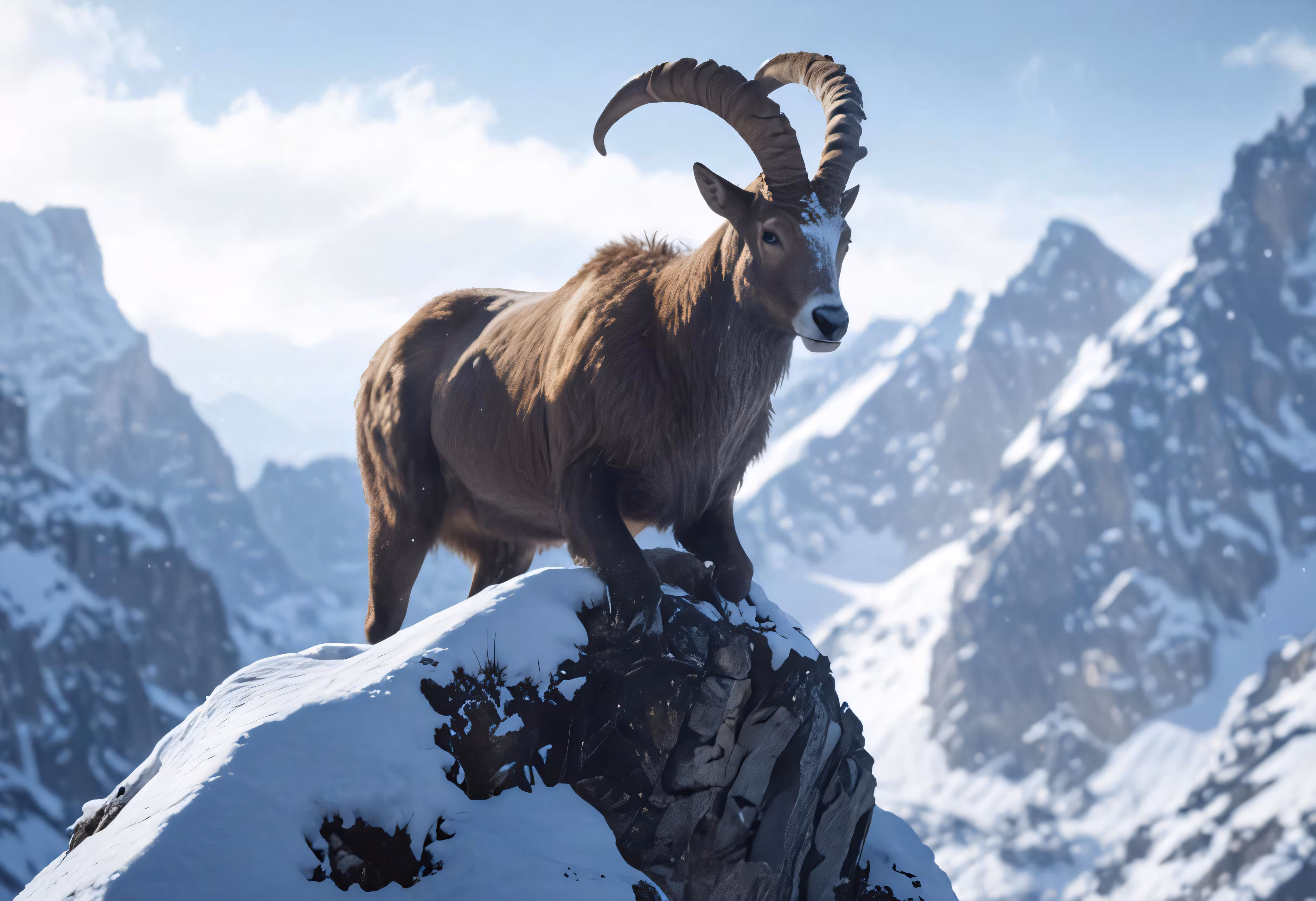 High resolution picture, free to use, a mountain goat standing on the edge of a cliff