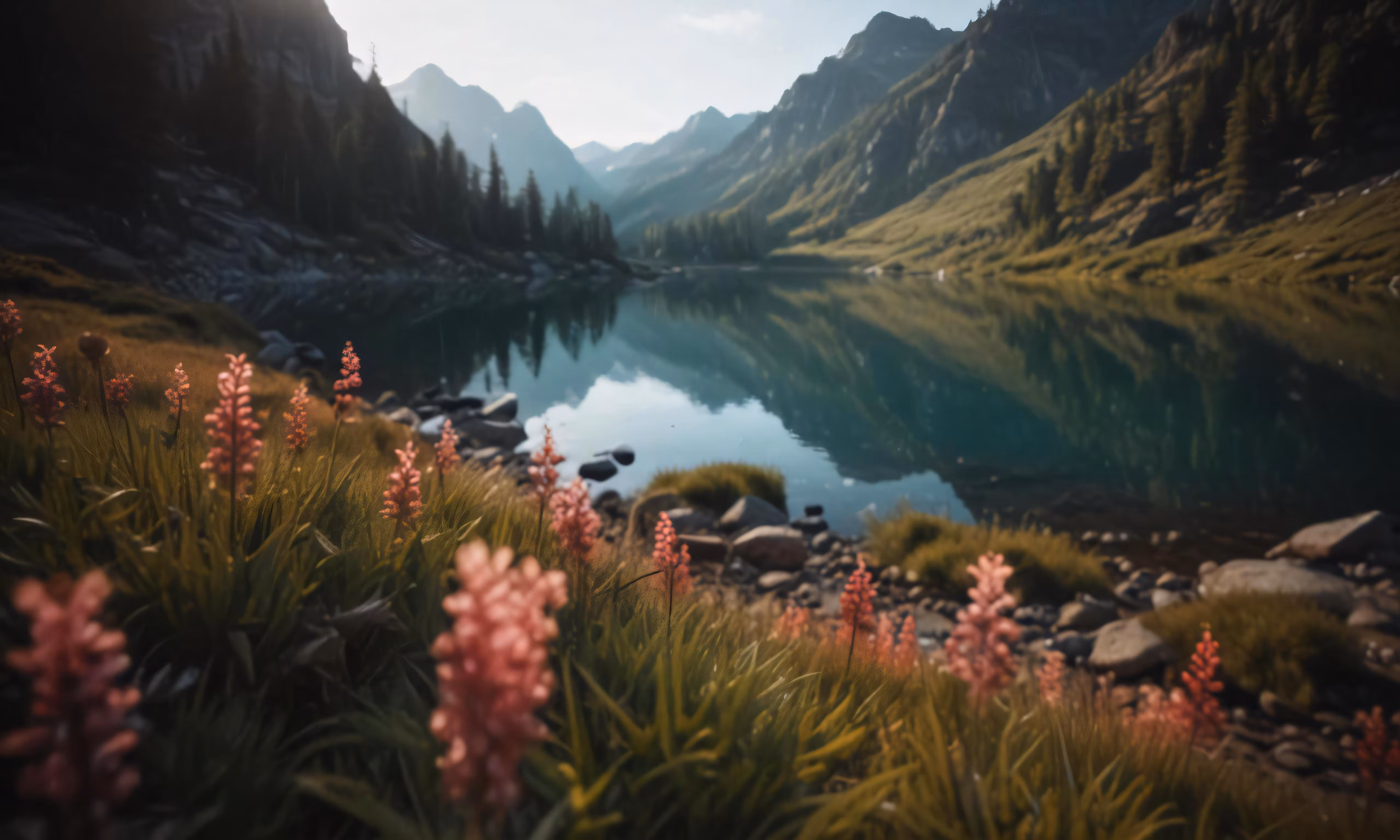 High resolution picture, free to use, a mountain lake surrounded by grass and trees
