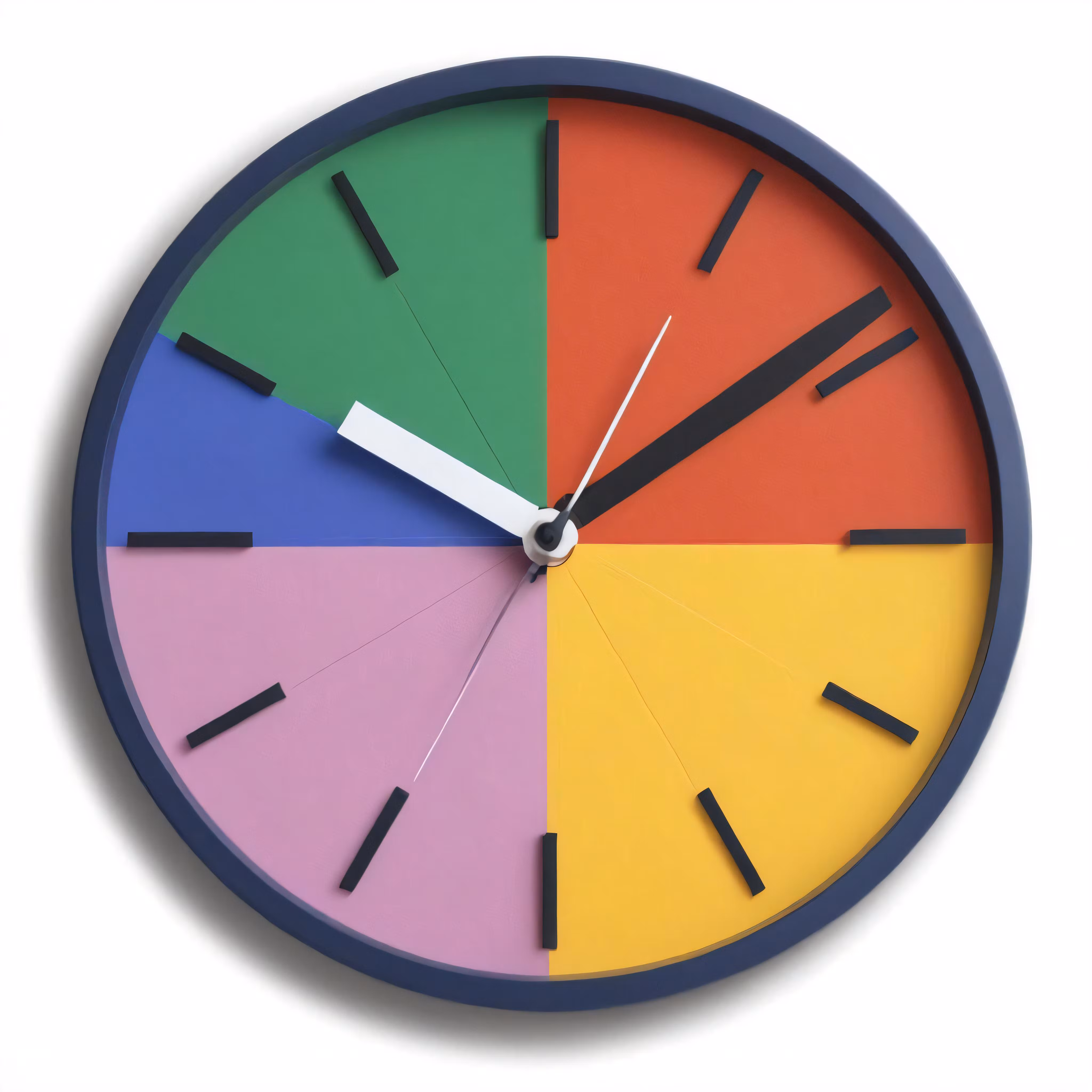 High resolution picture, free to use, a multi   colored clock is on the wall with black hands