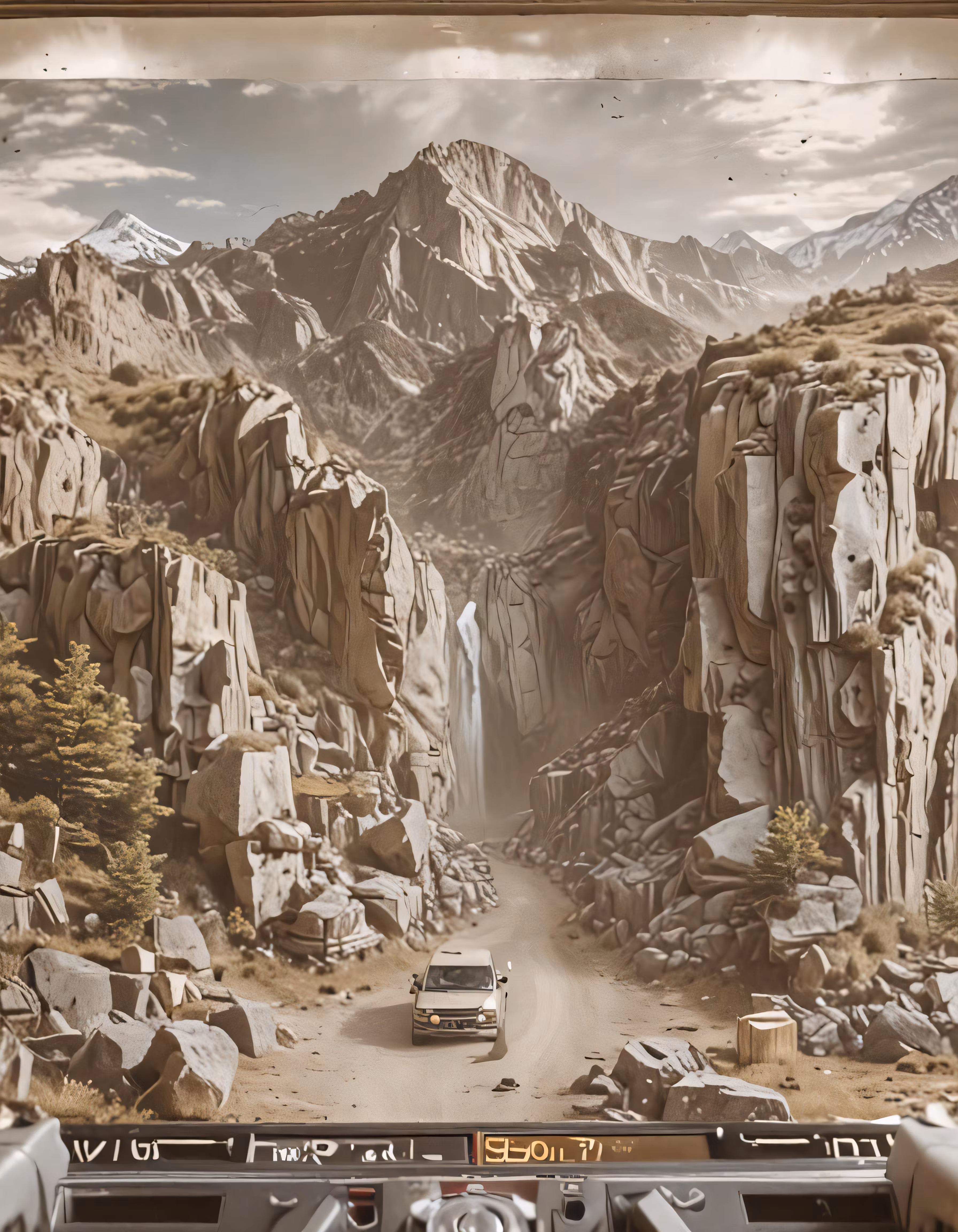 High resolution picture, free to use, a mural of cars going through a big tunnel