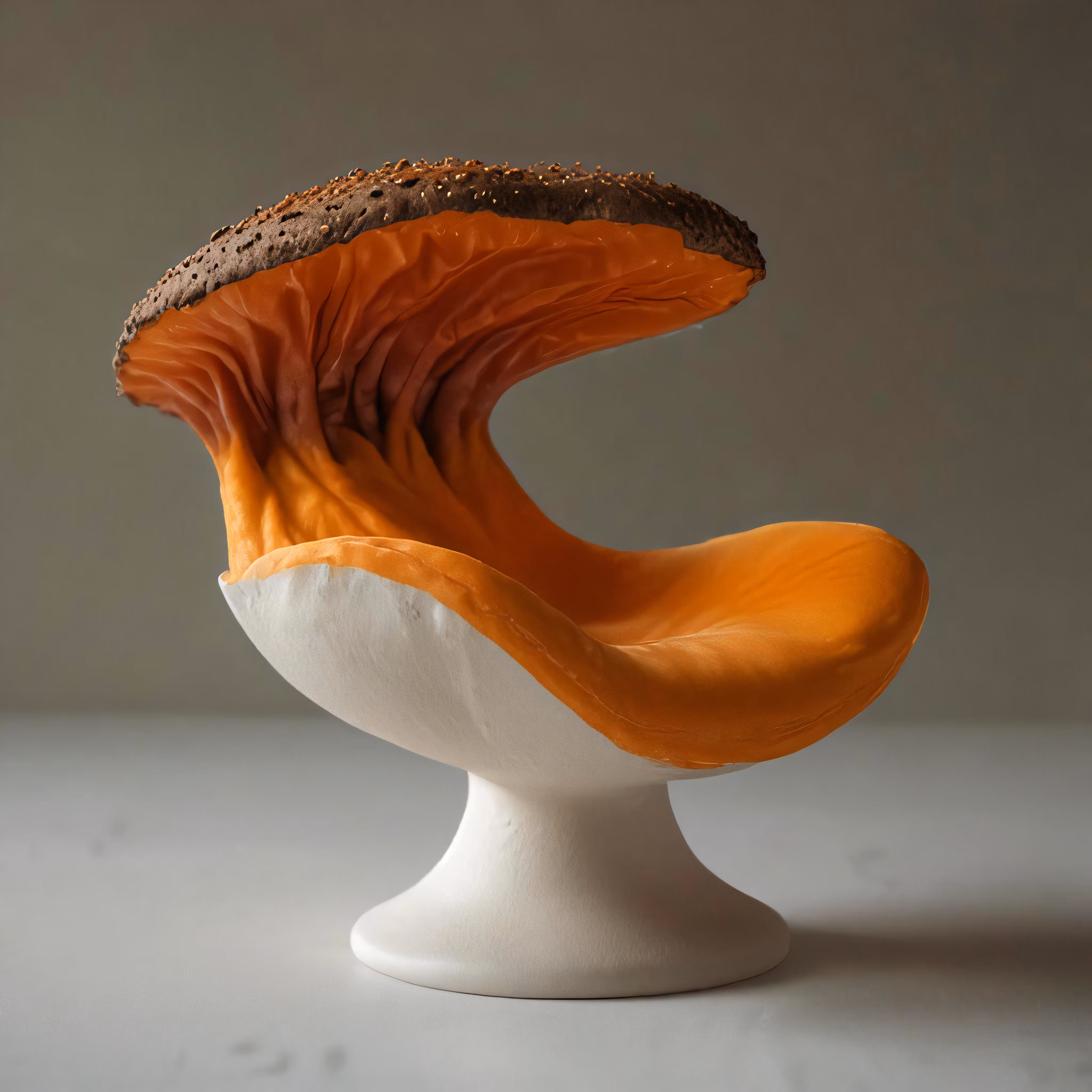 High resolution picture, free to use, a mushroom that is on a round white surface