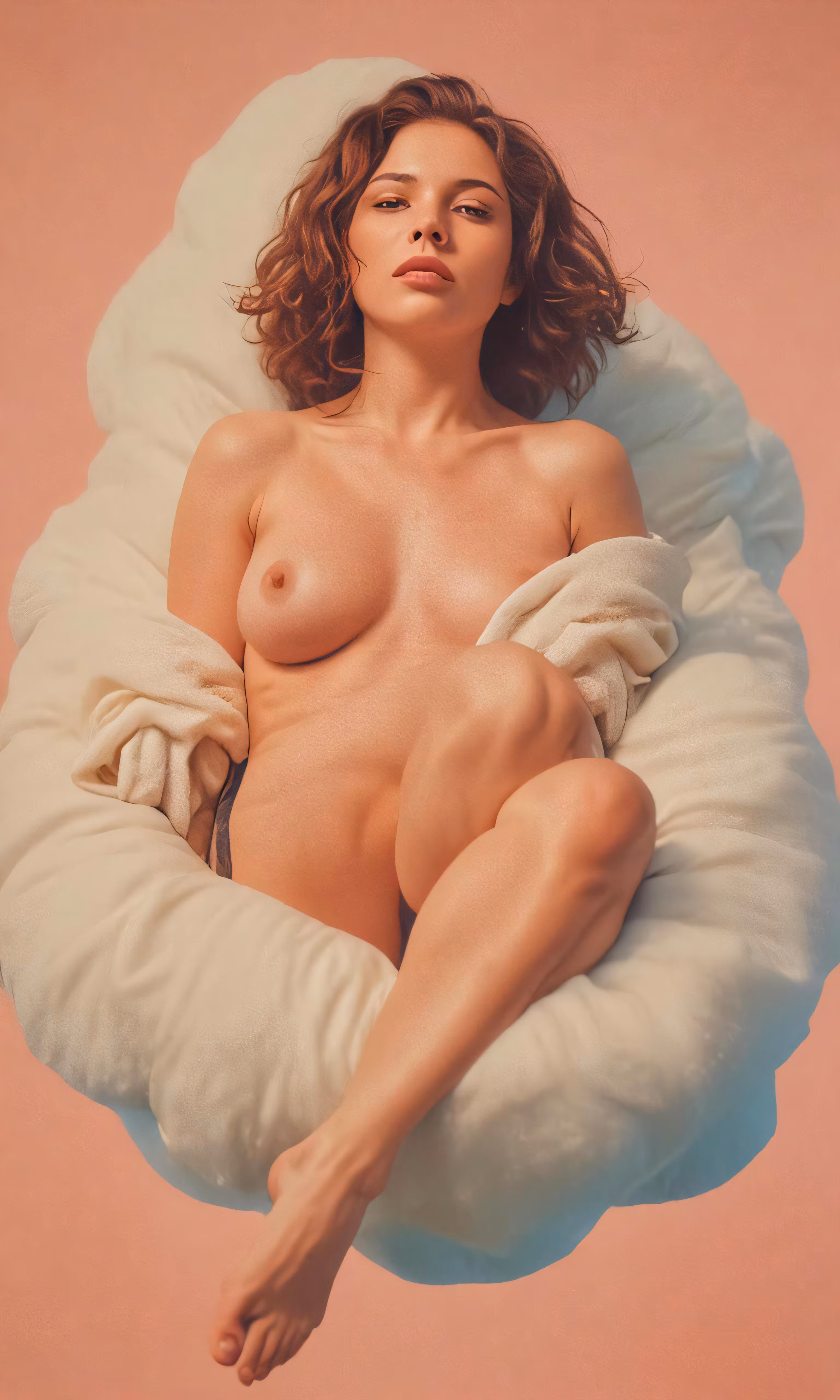High resolution picture, free to use, a naked woman sitting in a beanbag