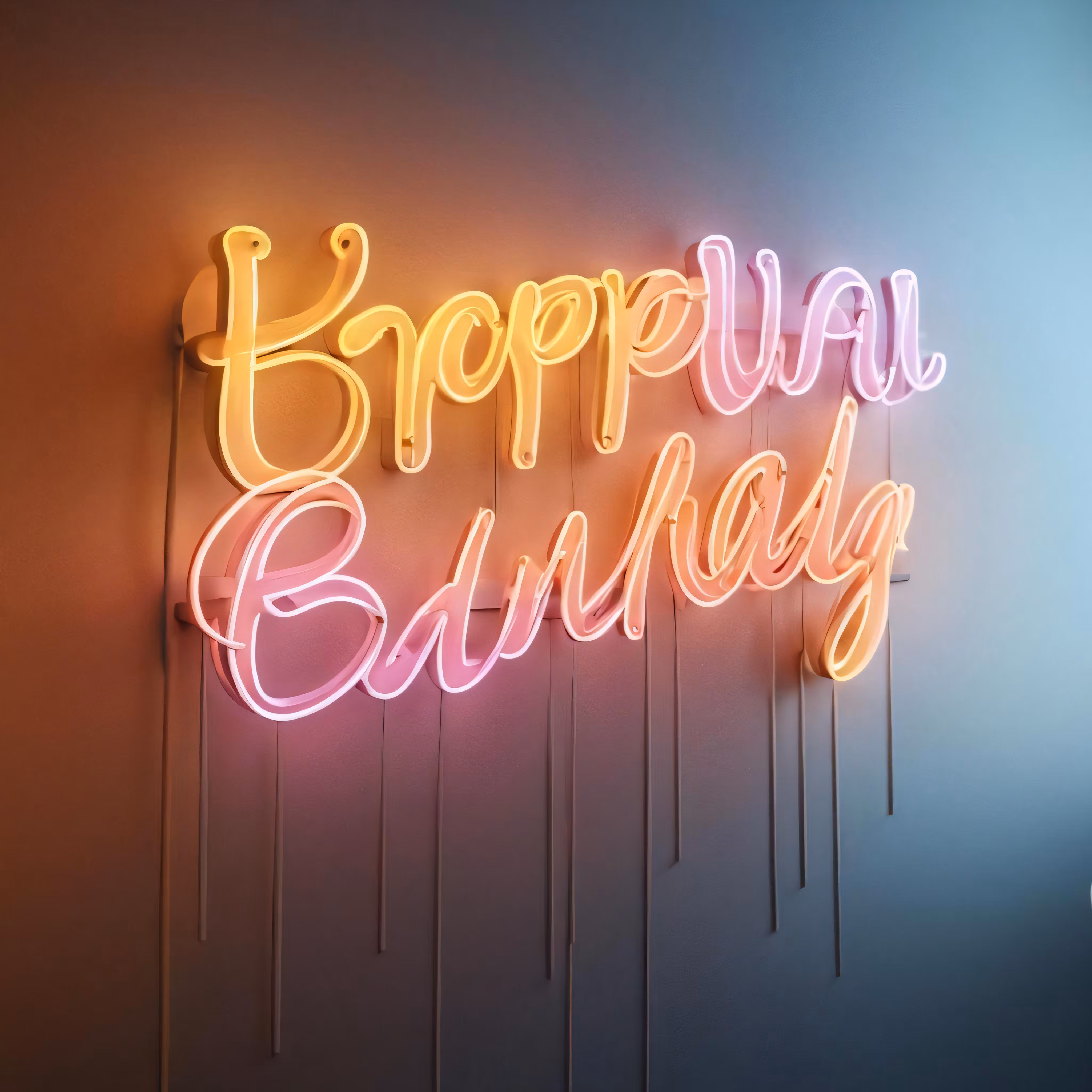 High resolution picture, free to use, a neon sign is mounted on the wall