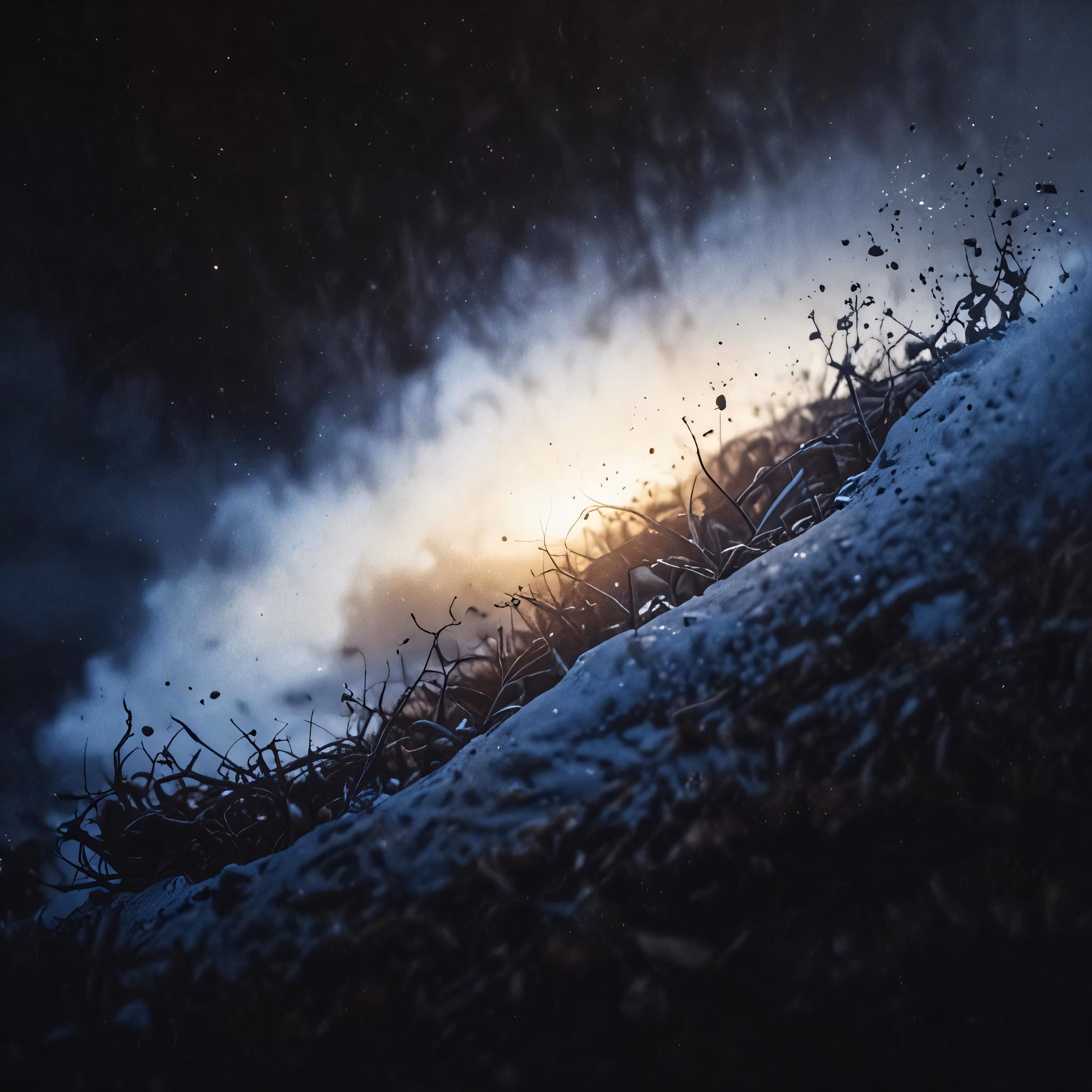 High resolution picture, free to use, a night scene with the sun behind some branches