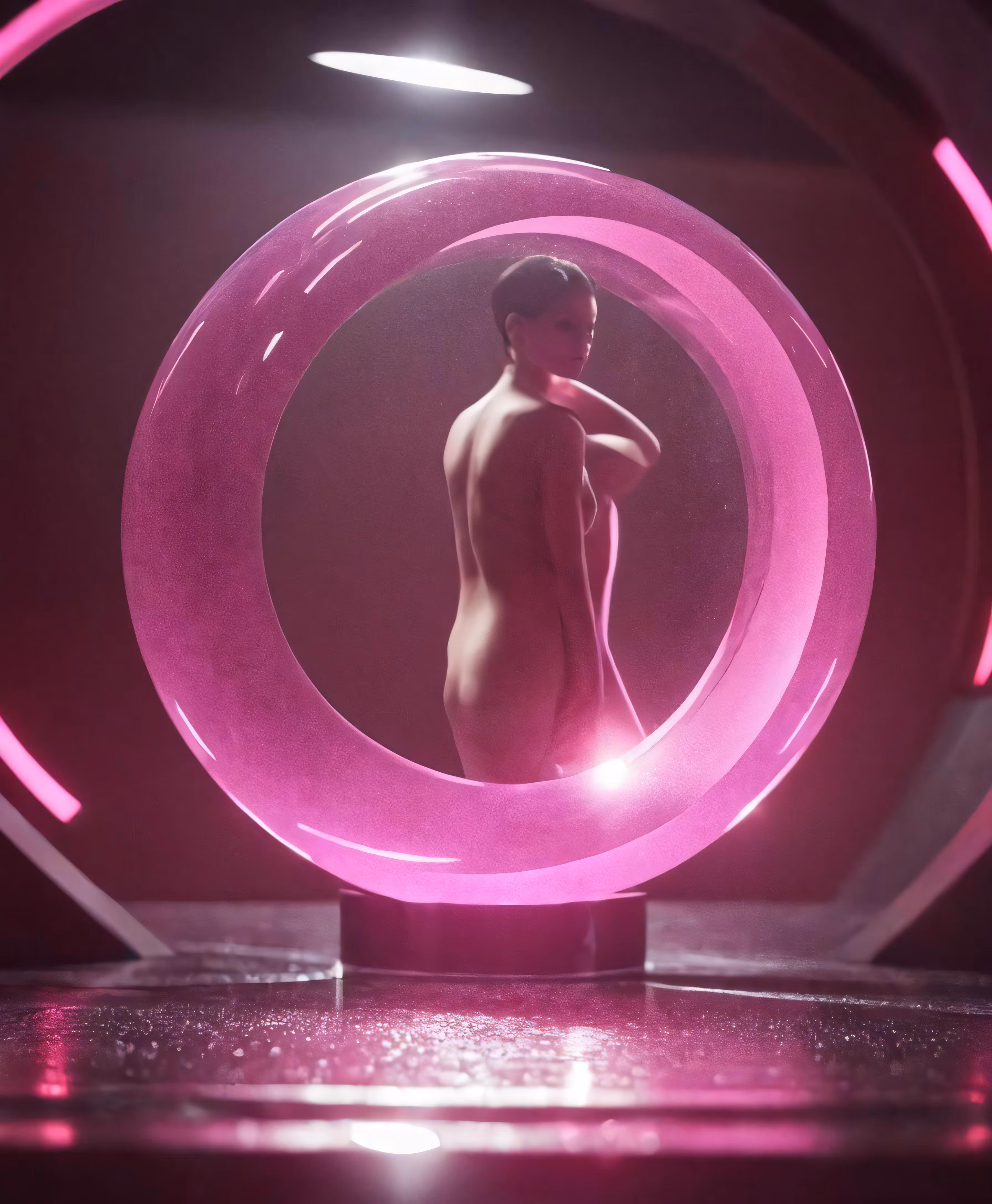 High resolution picture, free to use, a nude man in a pink light with a ring around it