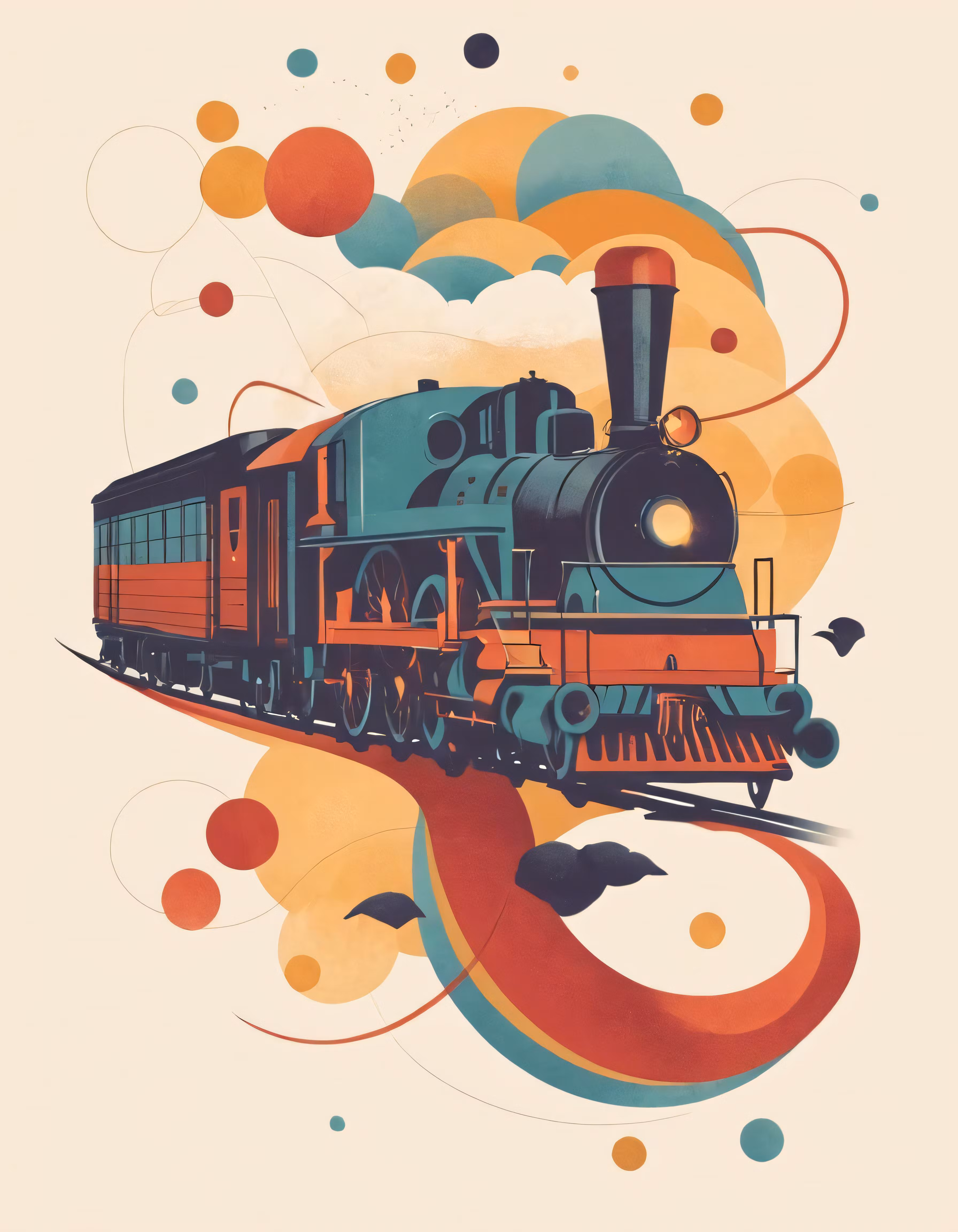 High resolution picture, free to use, a painting depicting a train with an abstract background