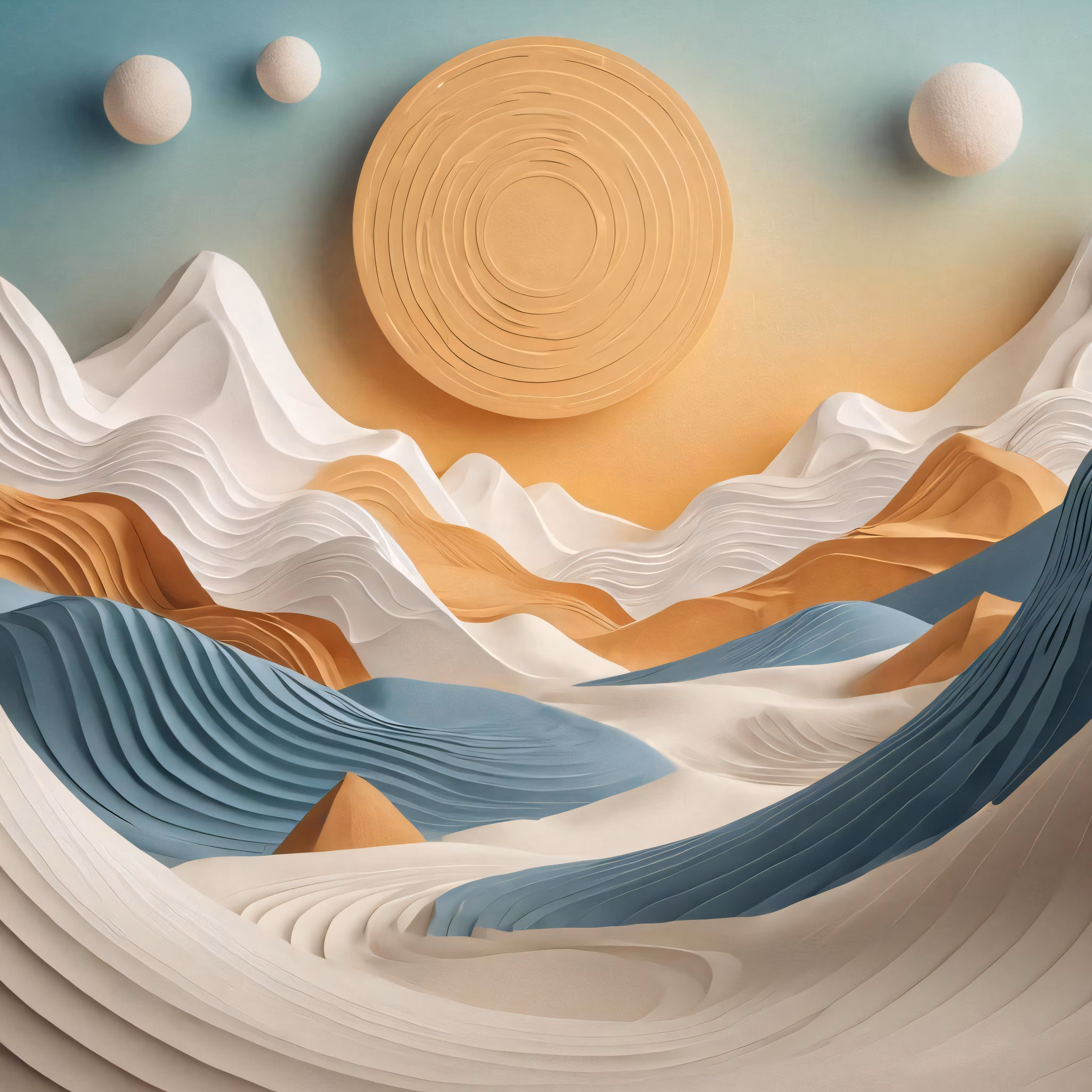 High resolution picture, free to use, a painting depicting the mountains, clouds and planets