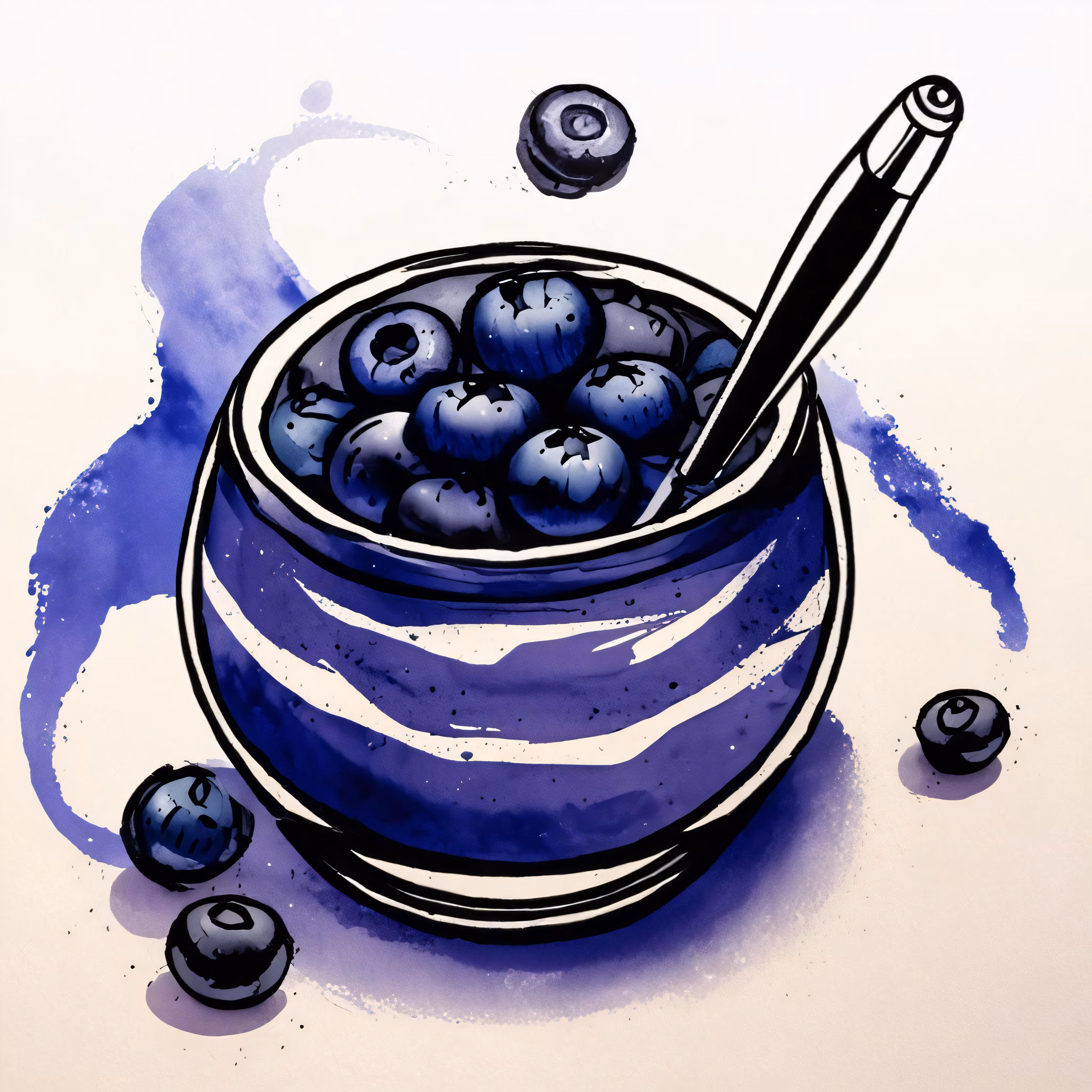 High resolution picture, free to use, a painting of a bowl with blueberries in it