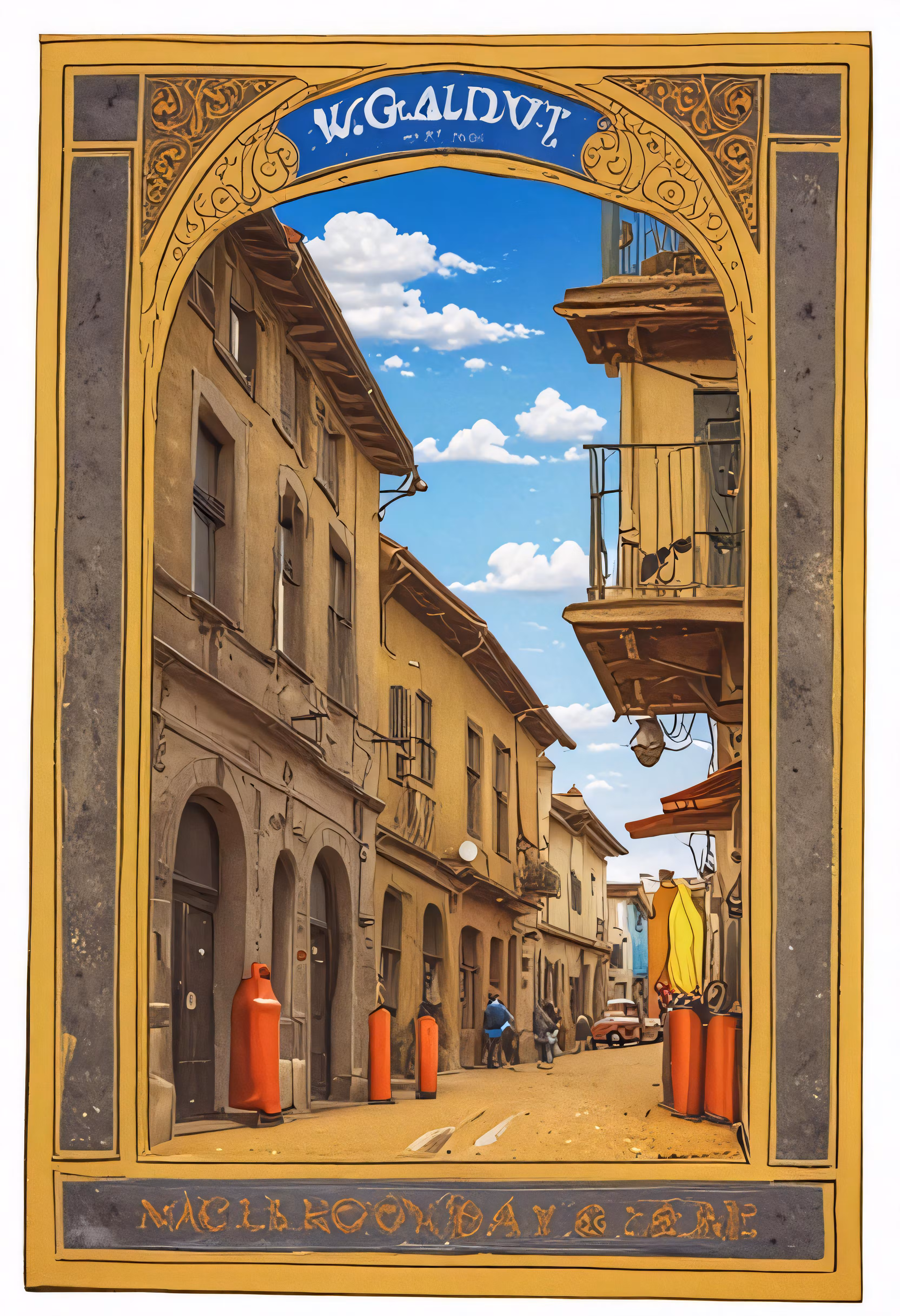 High resolution picture, free to use, a painting of a building with an archway leading to another building