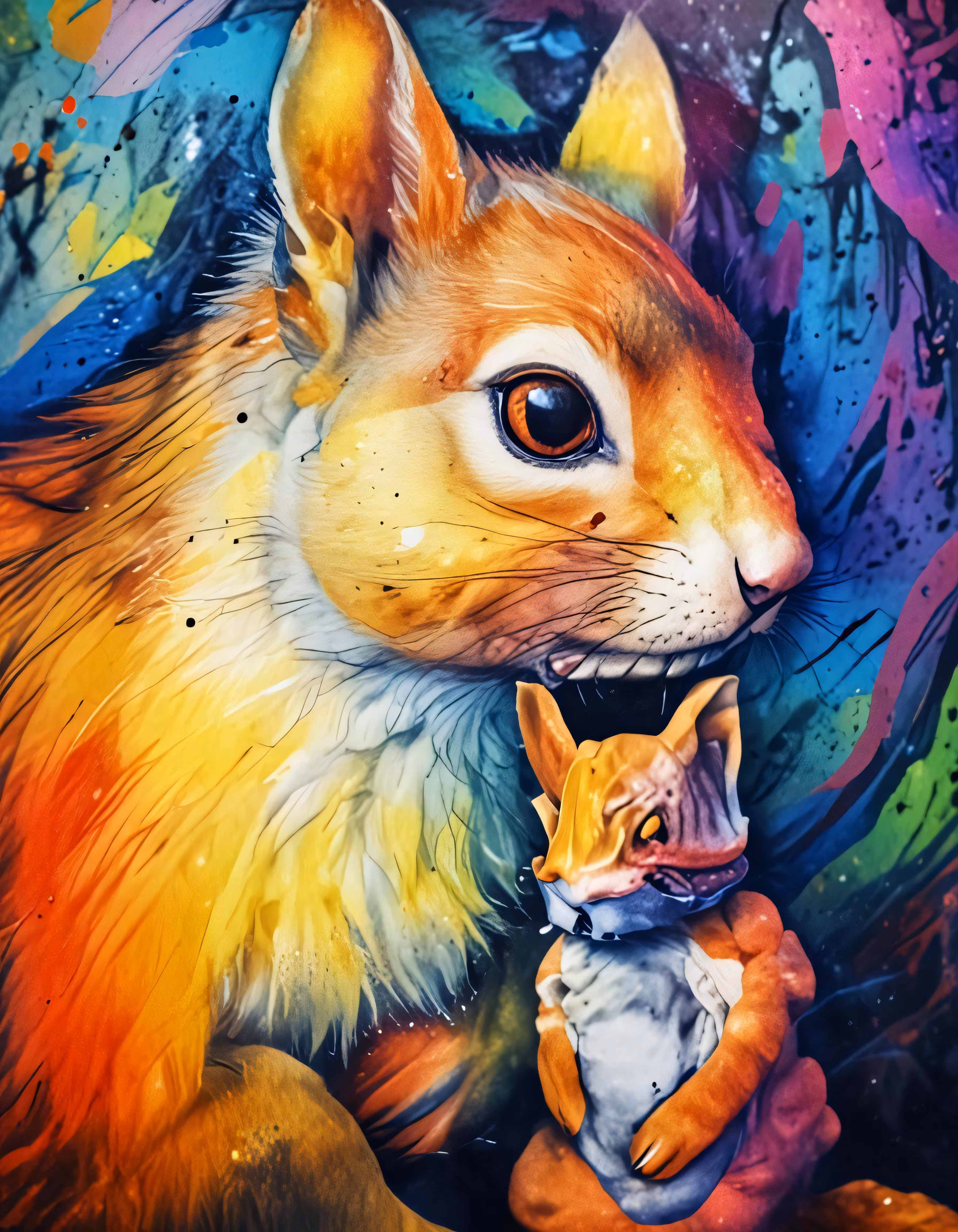 High resolution picture, free to use, a painting of a dog and cat on a multicolored background