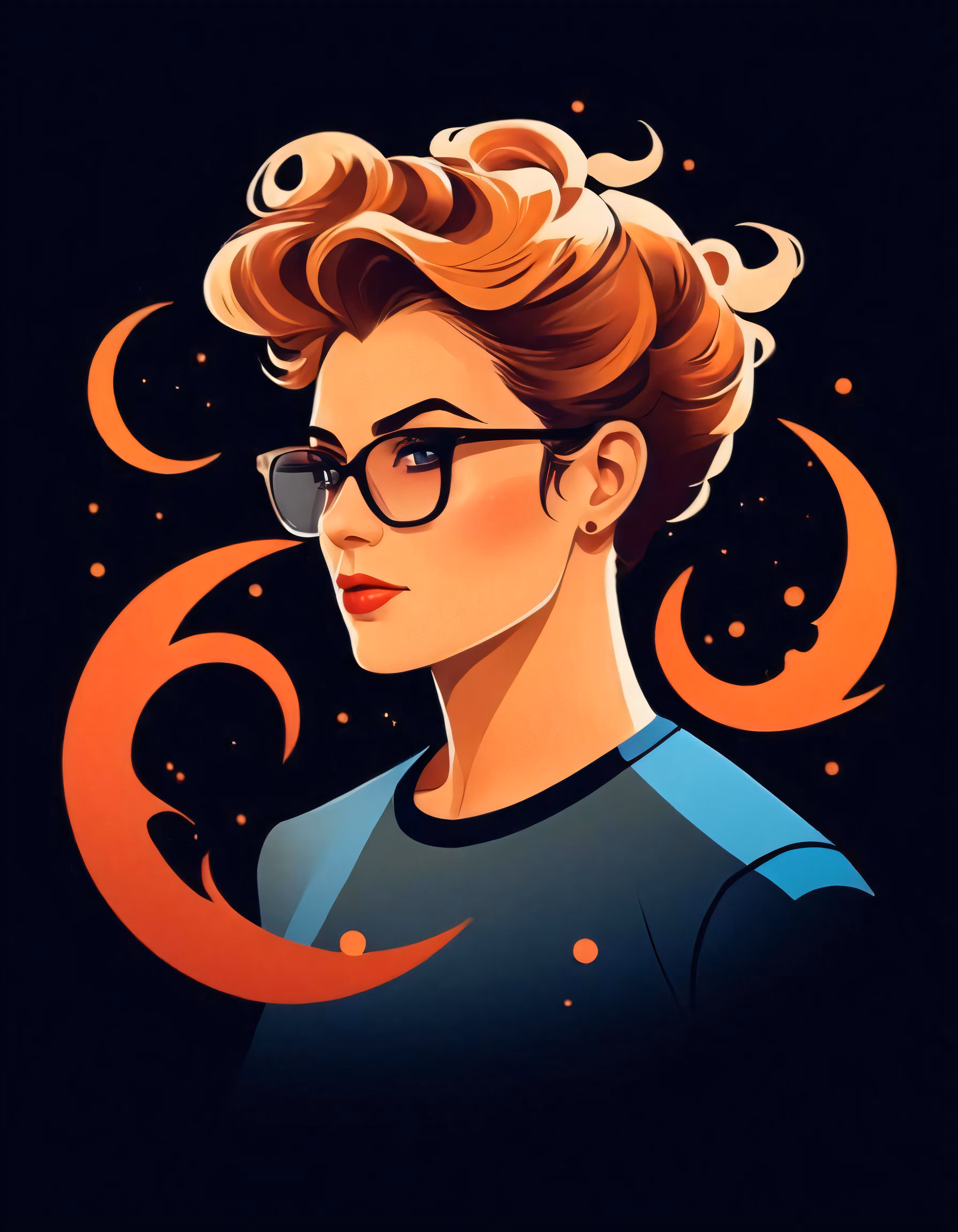 High resolution picture, free to use, a painting of a girl with glasses on her head