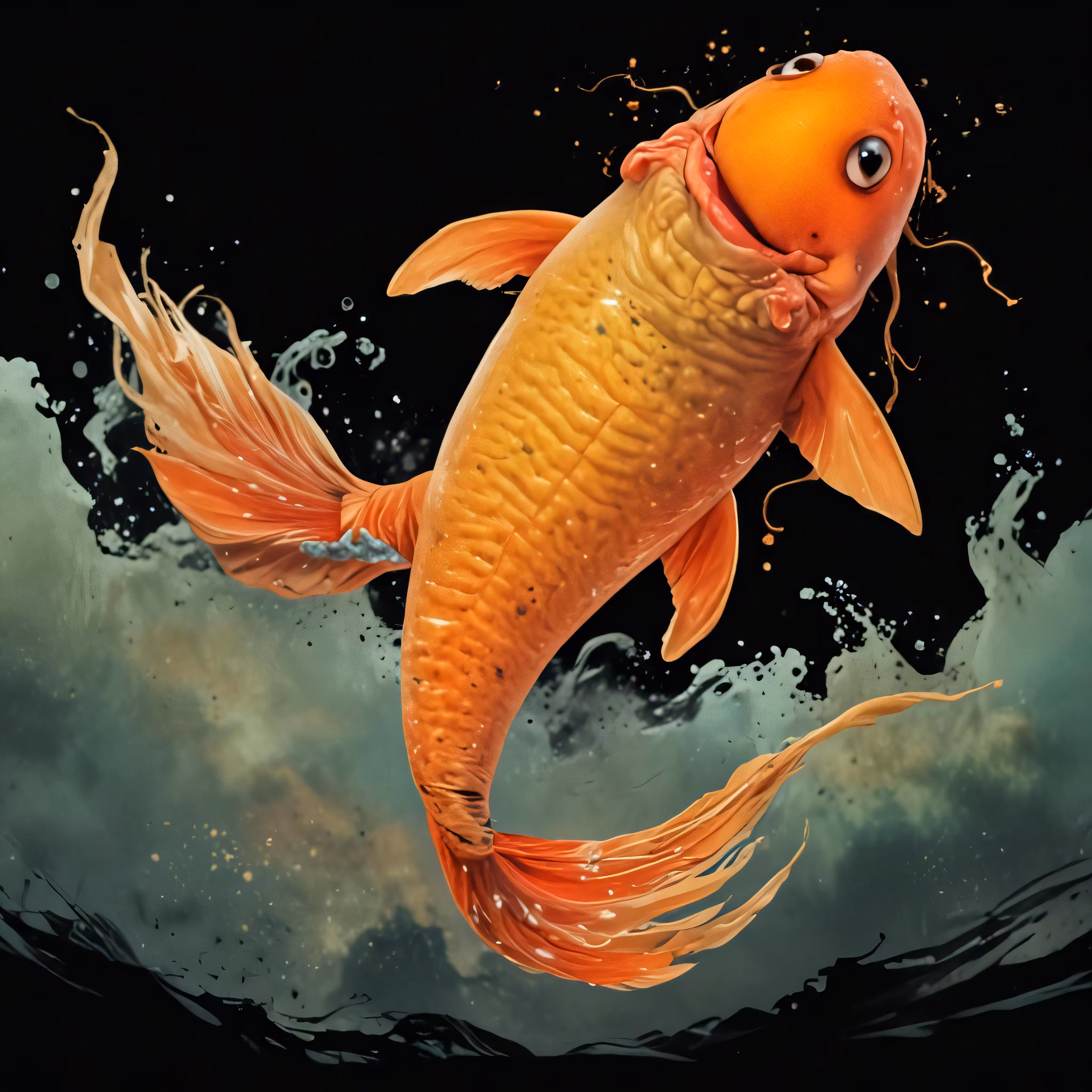 High resolution picture, free to use, a painting of a goldfish with big blue eyes