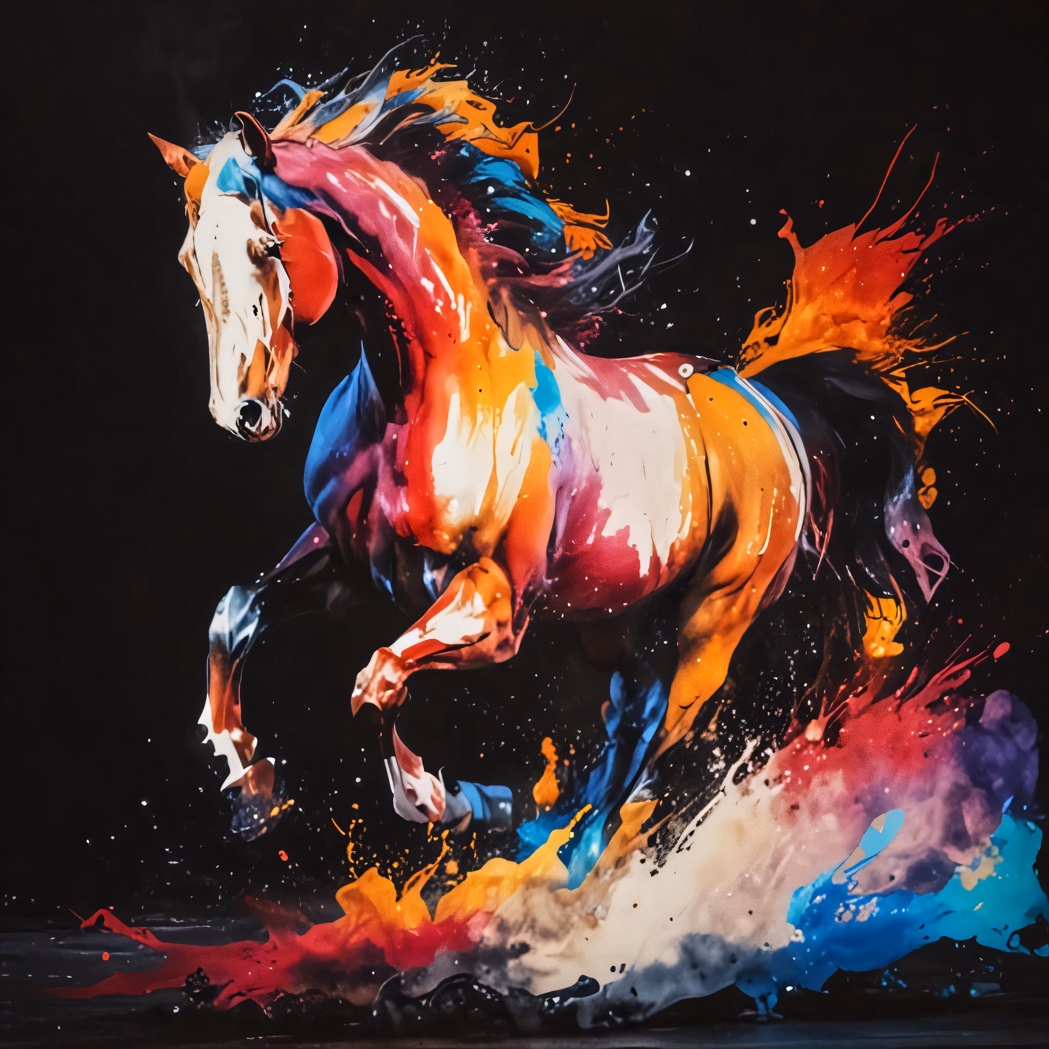High resolution picture, free to use, a painting of a horse running on its hind legs