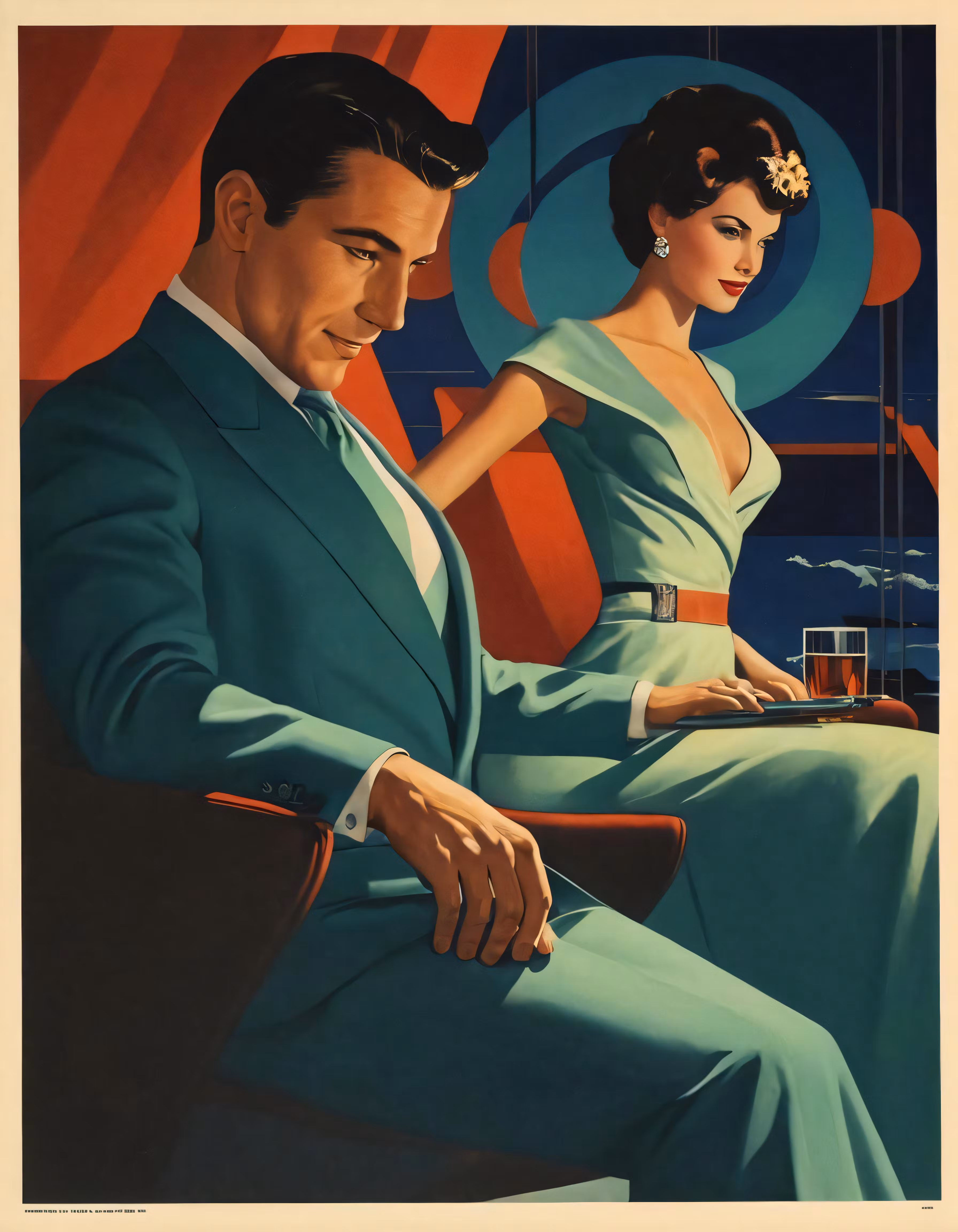 High resolution picture, free to use, a painting of a man and woman in evening attire