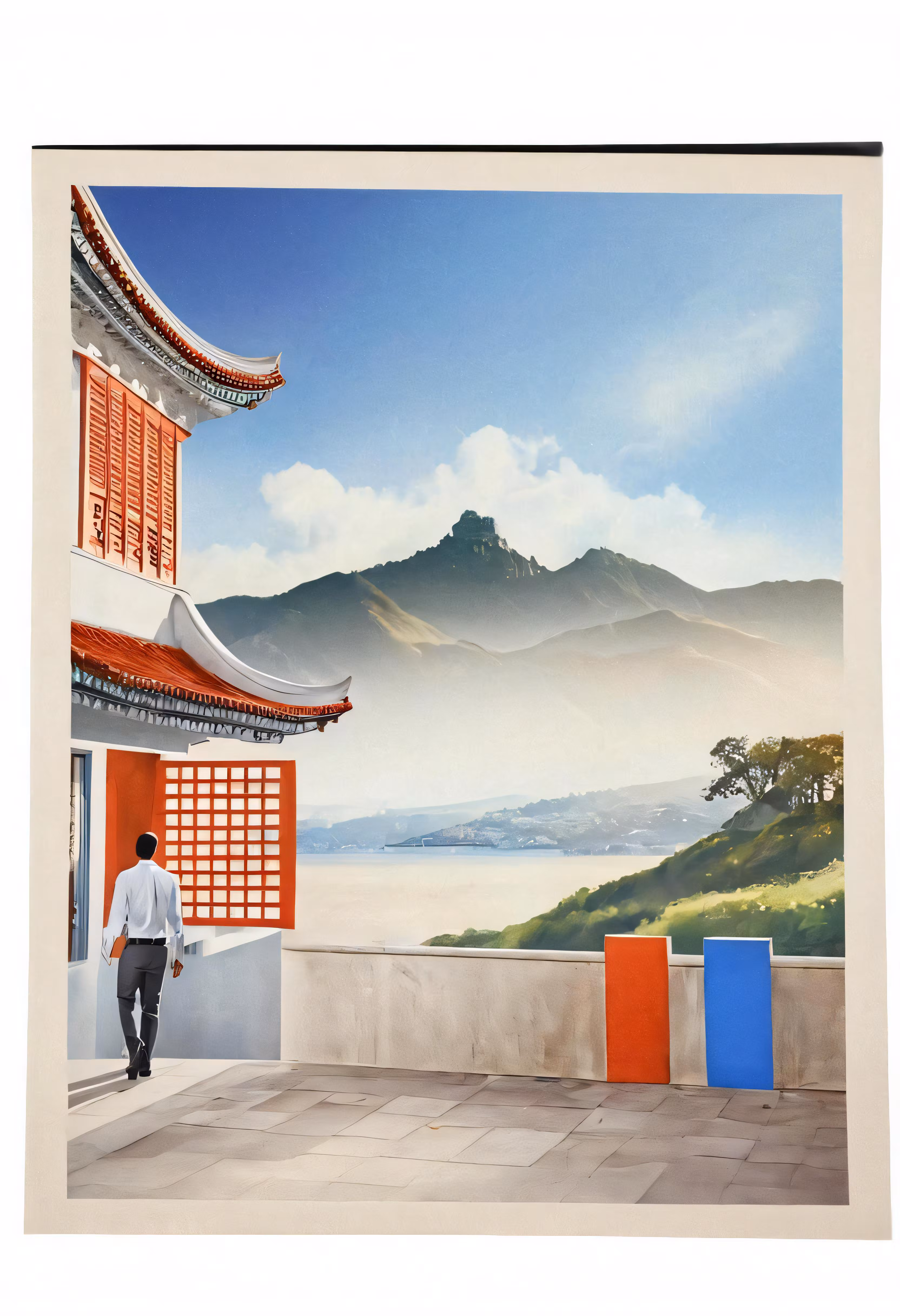 High resolution picture, free to use, a painting of a man walking up to a wall