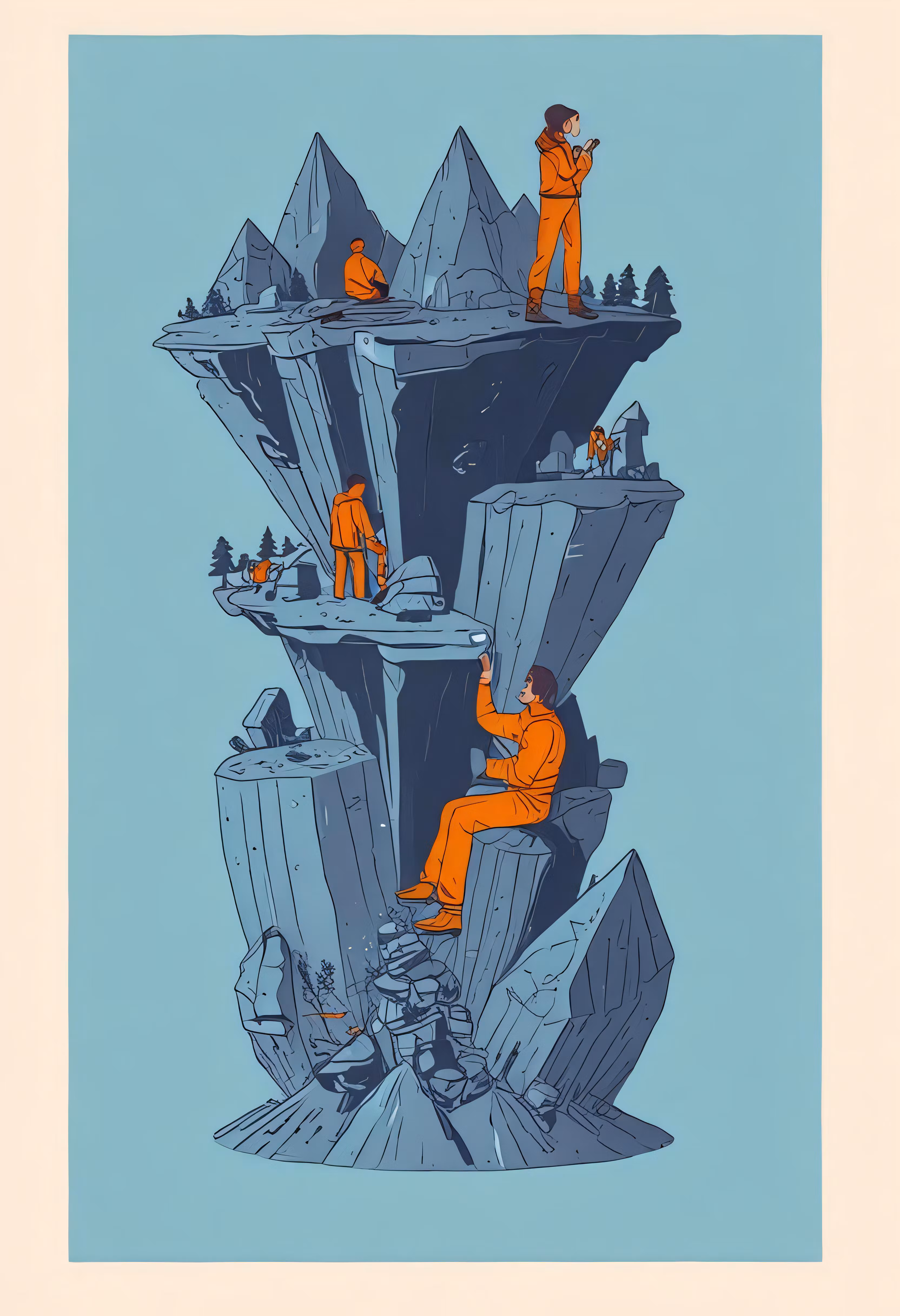 High resolution picture, free to use, a painting of a person in orange overalls and an unknown man