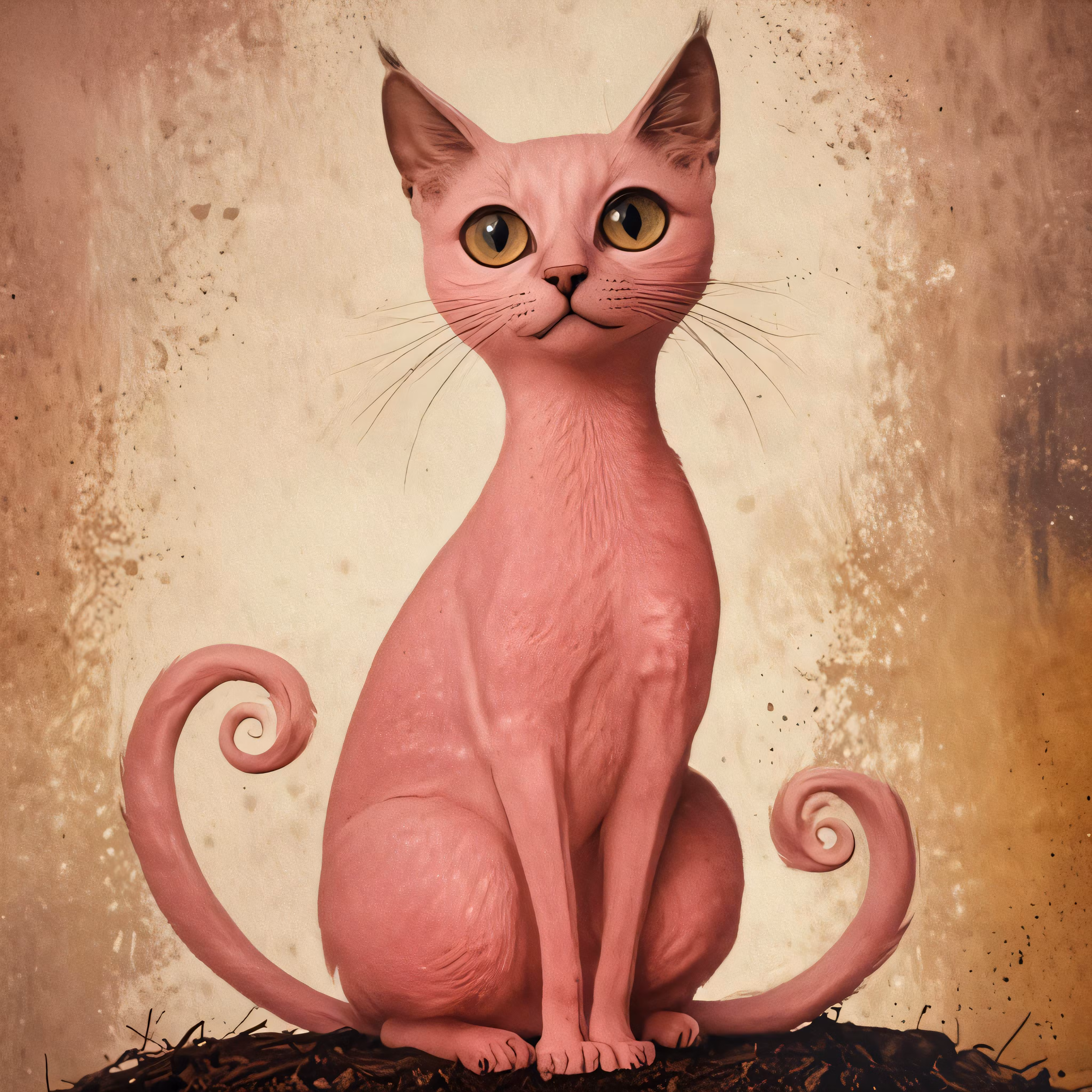 High resolution picture, free to use, a painting of a pink cat sitting on top of hay