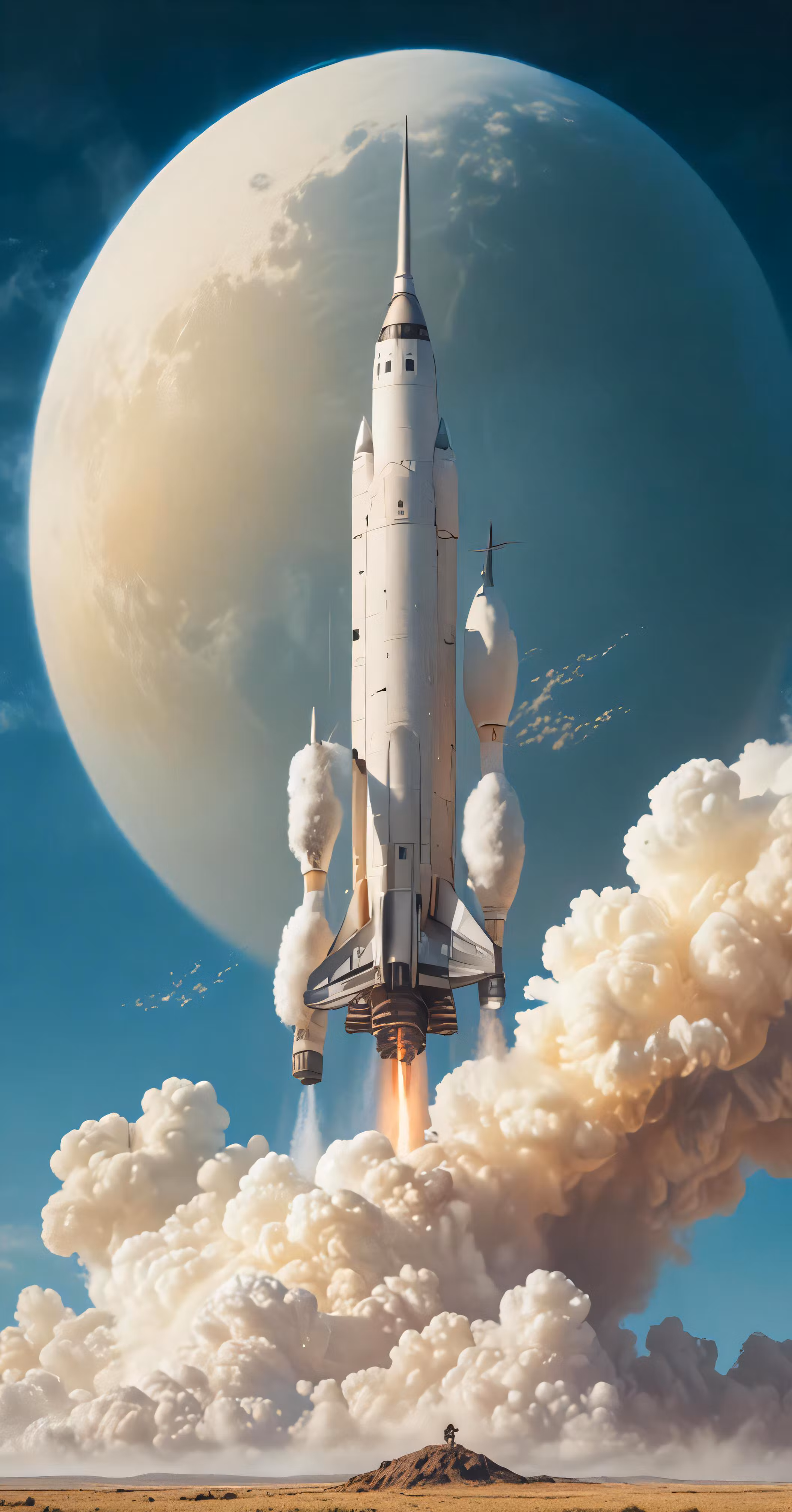 High resolution picture, free to use, a painting of a space shuttle taking off from the moon