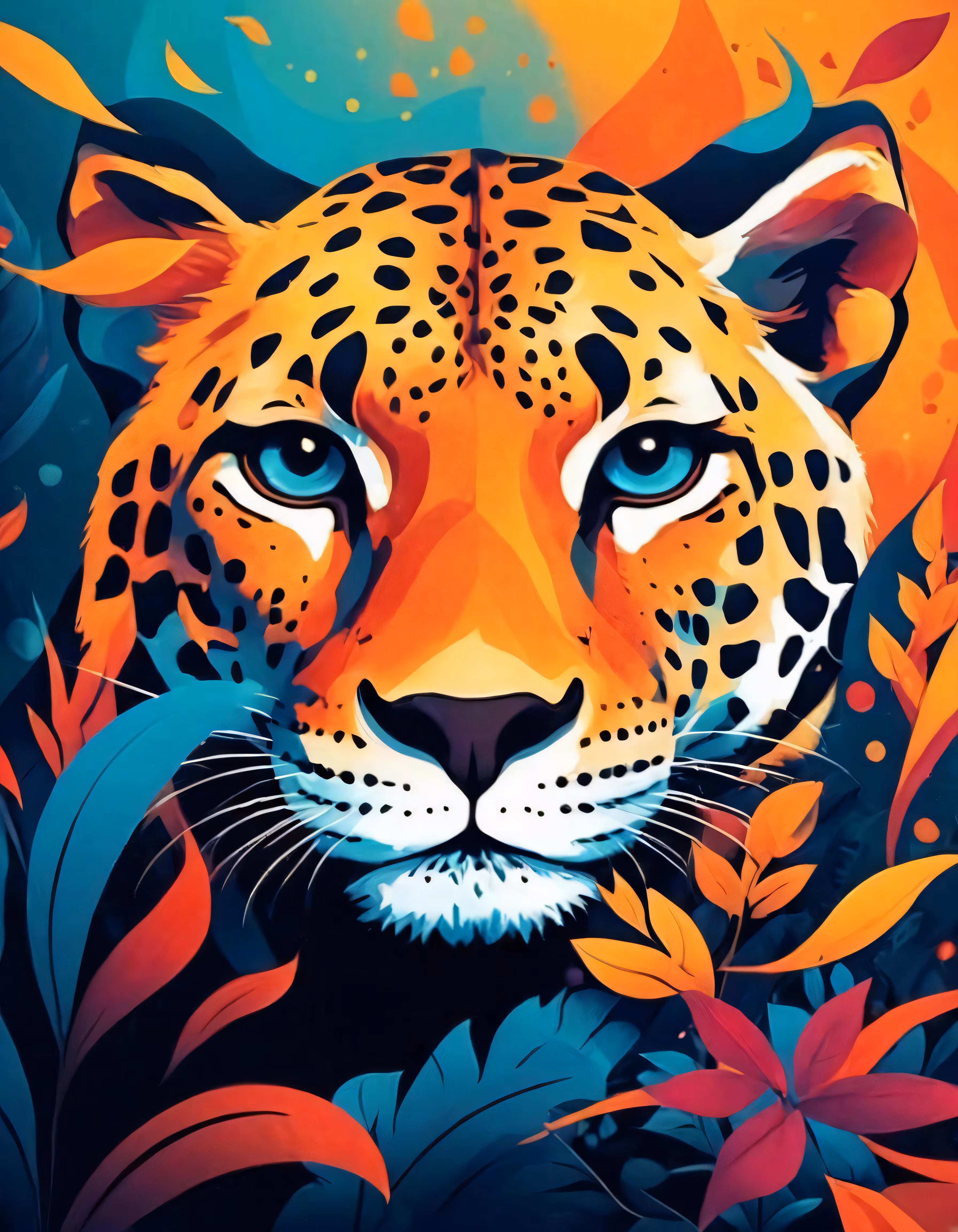 High resolution picture, free to use, a painting of a tiger with bright blue eyes