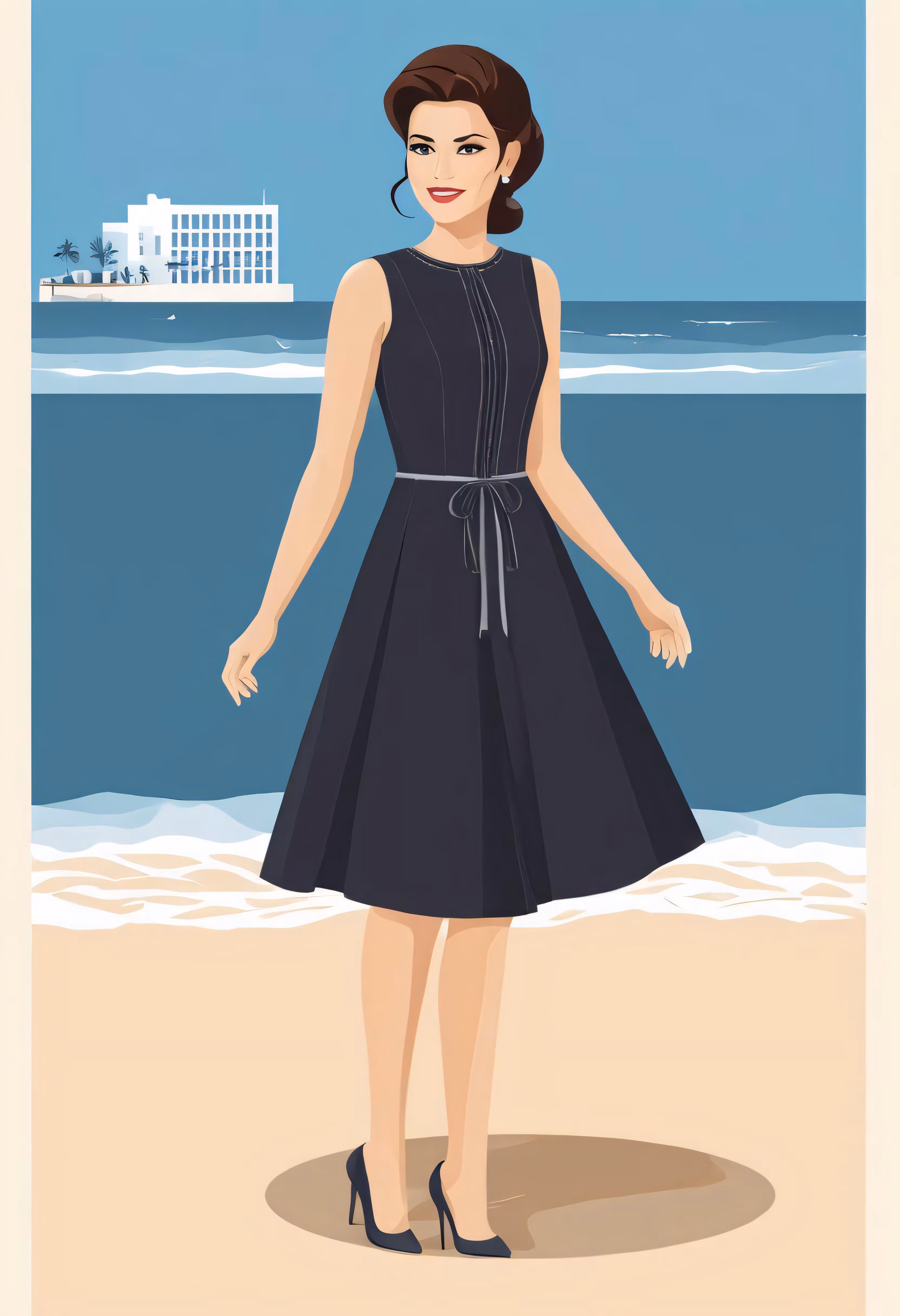 High resolution picture, free to use, a painting of a woman in a black dress at the beach