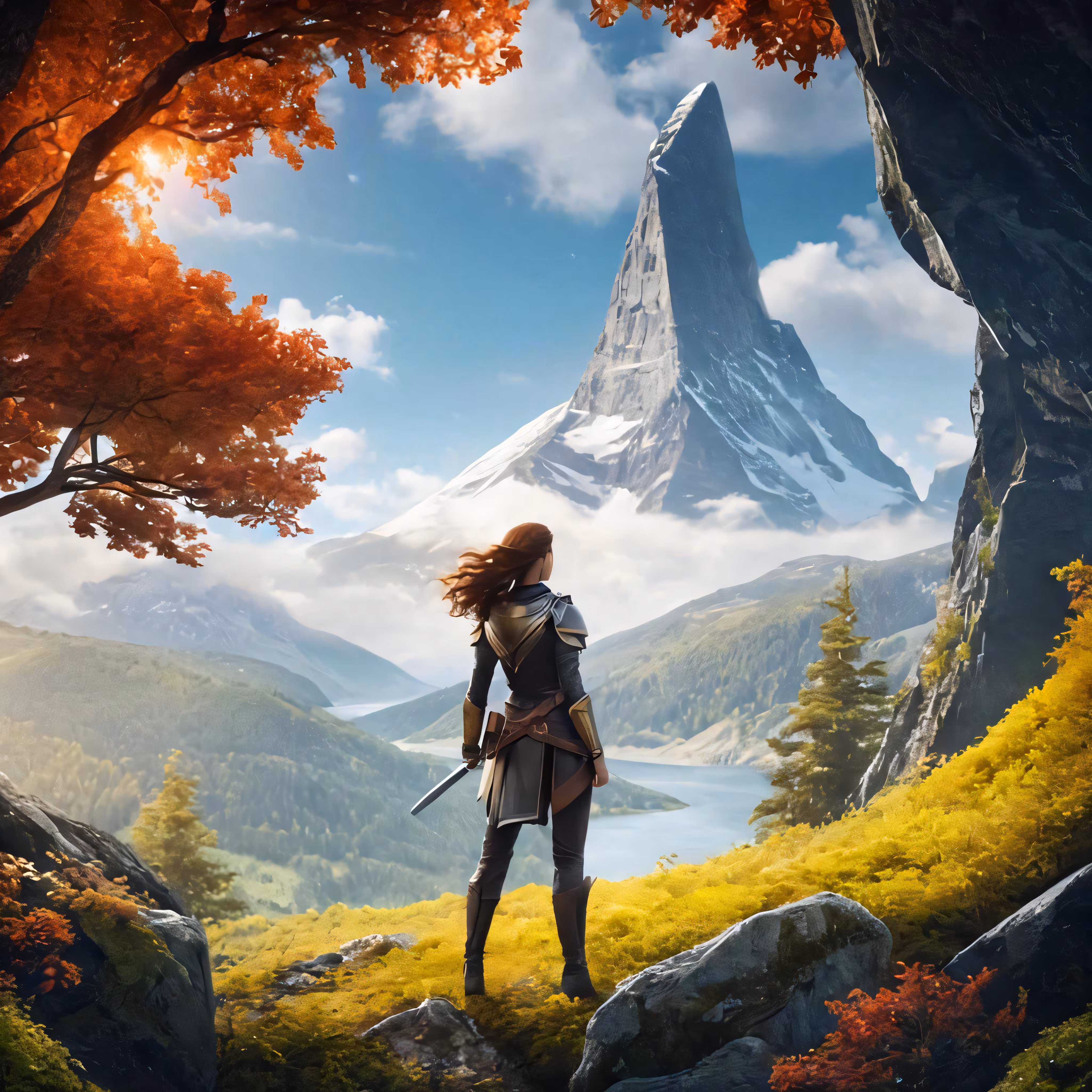 High resolution picture, free to use, a painting of a woman on top of a hill