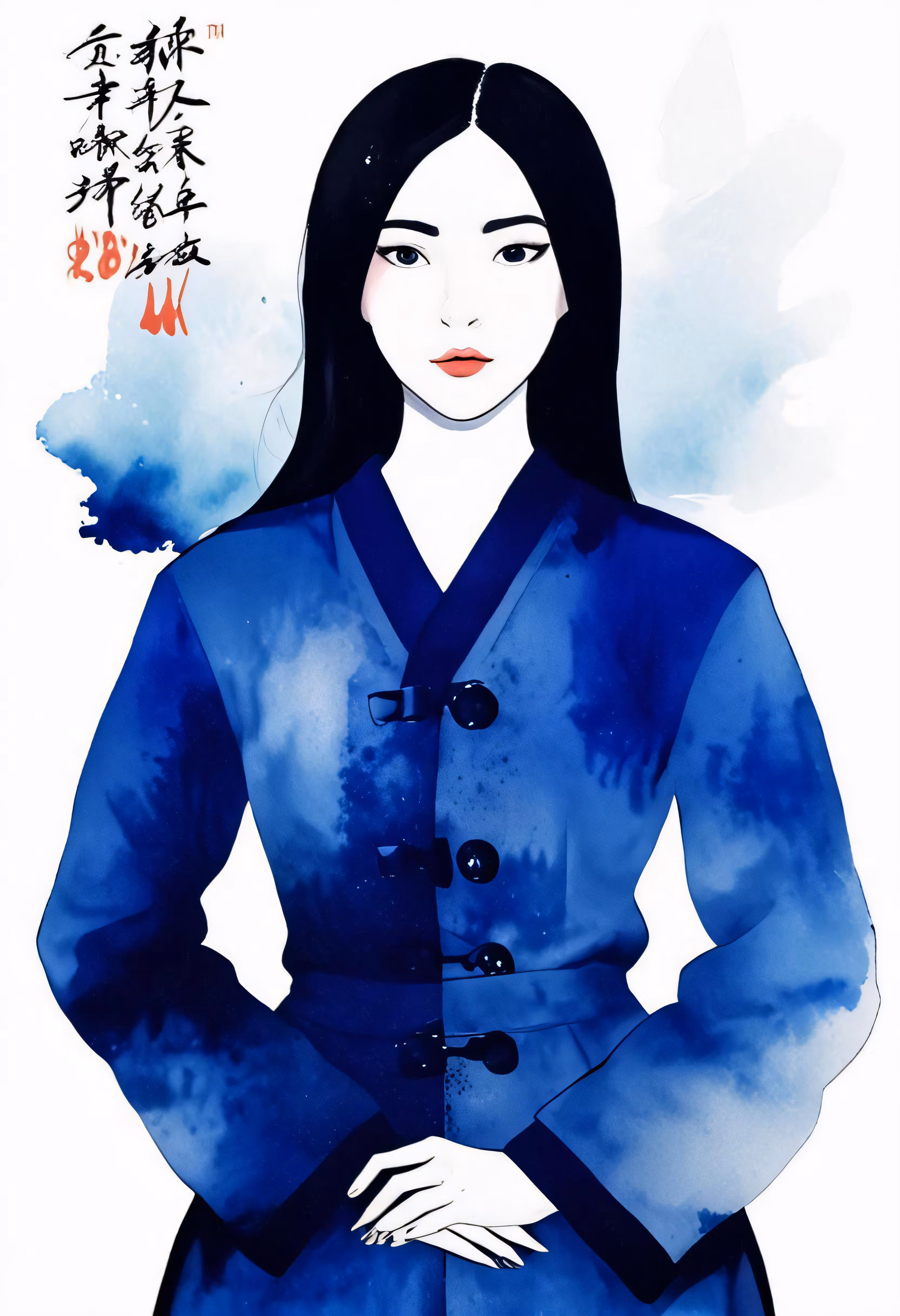 High resolution picture, free to use, a painting of a woman standing in front of the caption