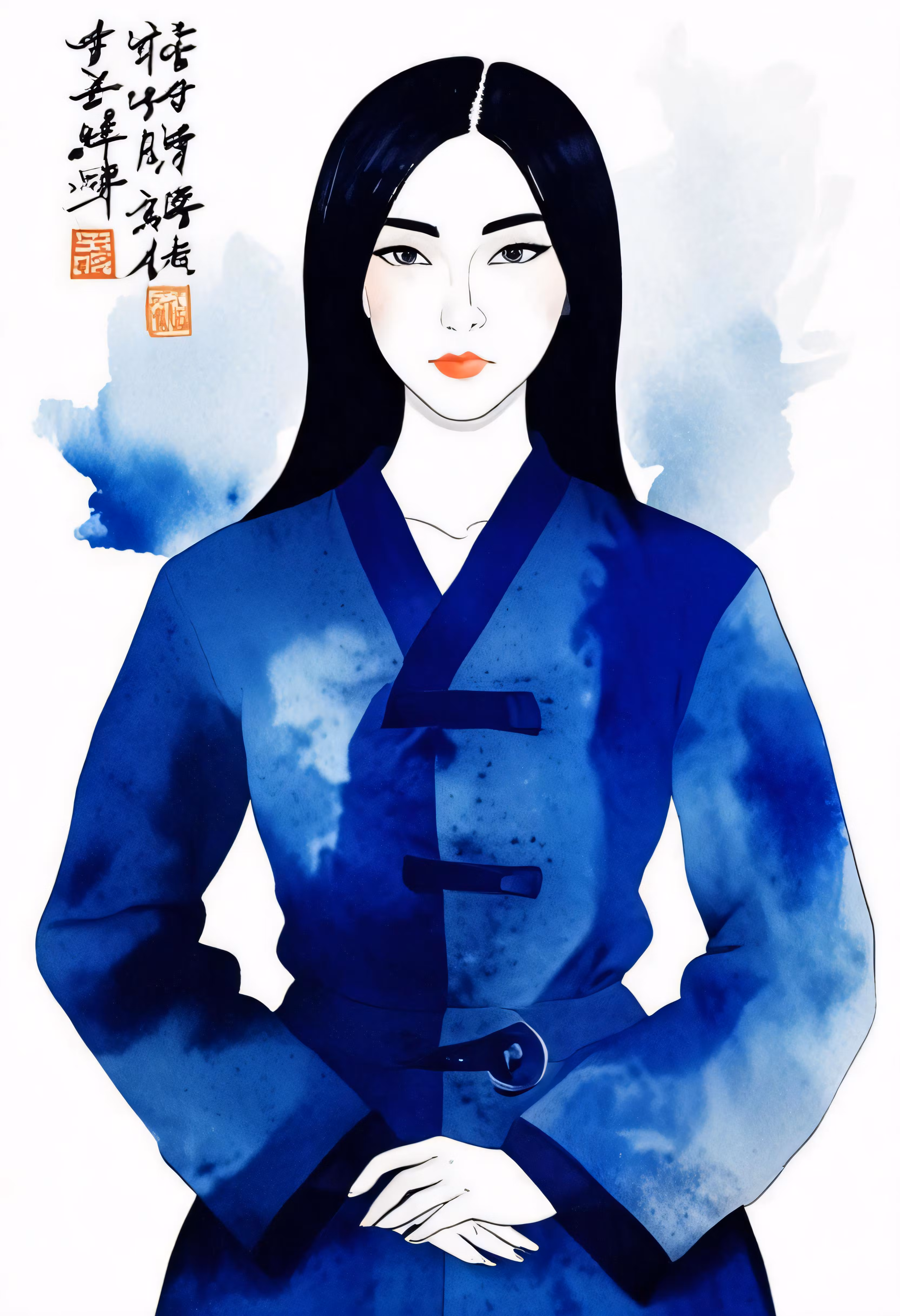 High resolution picture, free to use, a painting of a woman wearing a blue suit